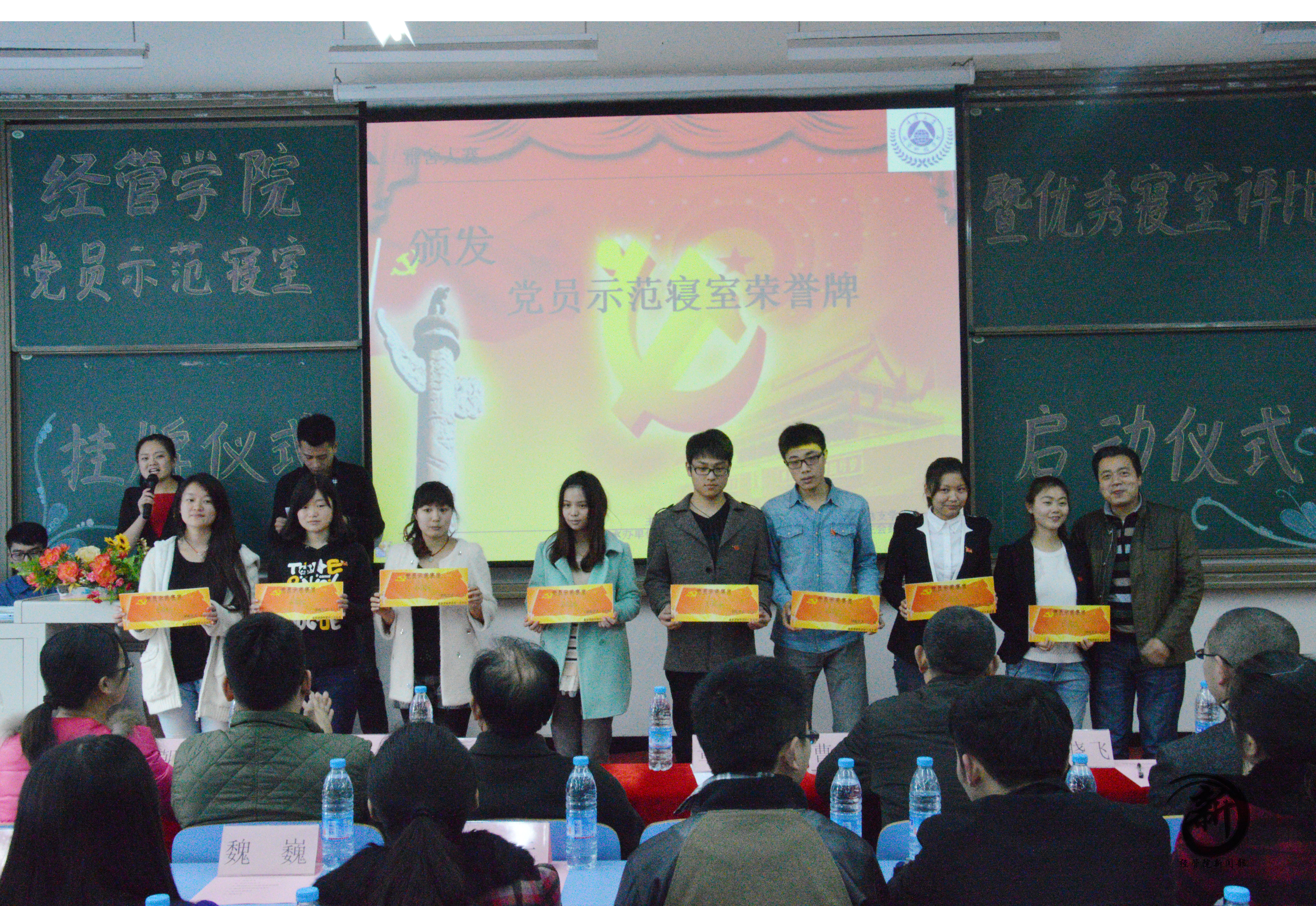 2014年3月12日12:30,经管学院在6教111隆重举行了“党员示范寝室挂牌仪式暨优秀寝室评优启动仪式”。校党委副书记、副校长章锋云;学生处副处长、校团委书记陈宣君;经管学院党总支书记赵昌龙;院长曹跃群以及经管院各辅导员出席了本次仪式。
