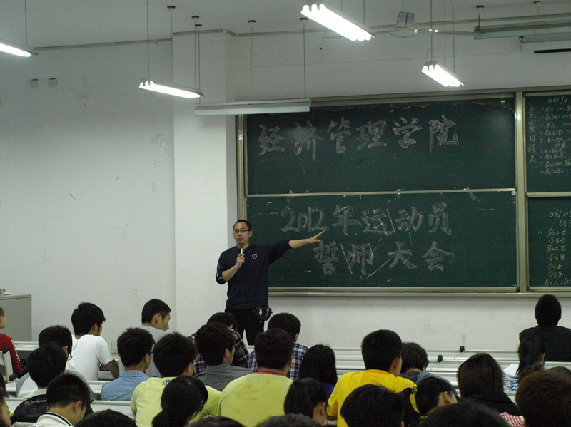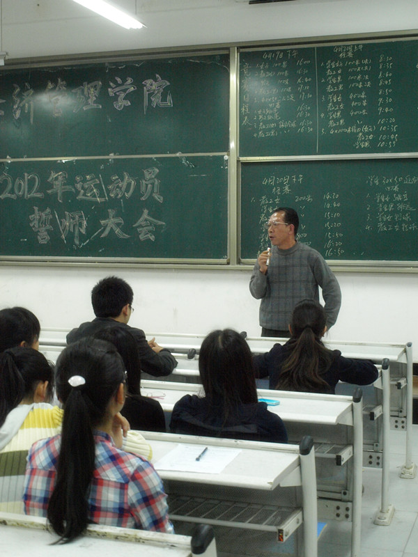 首先,李晓飞老师将此次运动会的竞赛日程写在了黑板上,耐心的为同学们讲解了关于运动会的一些相关注意事项。特别强调了同学们在长跑比赛项目前需要去医务室免费体检,体现了学院的领导们、老师们对同学们的关怀。同时,要求运动会参赛选手要持相关证件参加比赛。在李晓飞老师的介绍下,我们的同学们已对明天的运动会充满了信心。