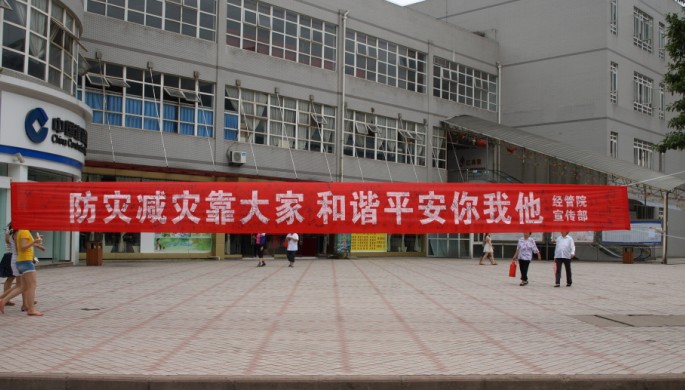 活动一开始,工作人员便积极号召过往同学前来签名,并观看宣传栏上张贴的防灾减灾宣传小知识。许多同学都在宣传横幅上留下了自己的签名,表明积极参与防灾减灾活动的决心。
