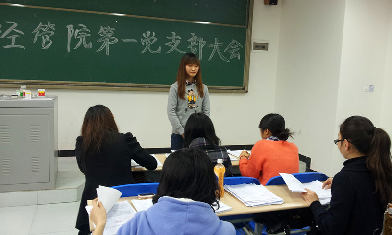 学生一党支部书记杨丹同志宣布了大会流程后,每位发展对象都有三分钟的入党动机讲述,并作简要的自我评估。接着,广大党员发表自身意见并进行了表决。会上,各位发展对象围绕“民生”及“个人发展”话题展开讨论。其中,来自国际贸易萧琼等同学见解独特,感悟深刻。给广大党员及预备党员同志留下深刻印象。