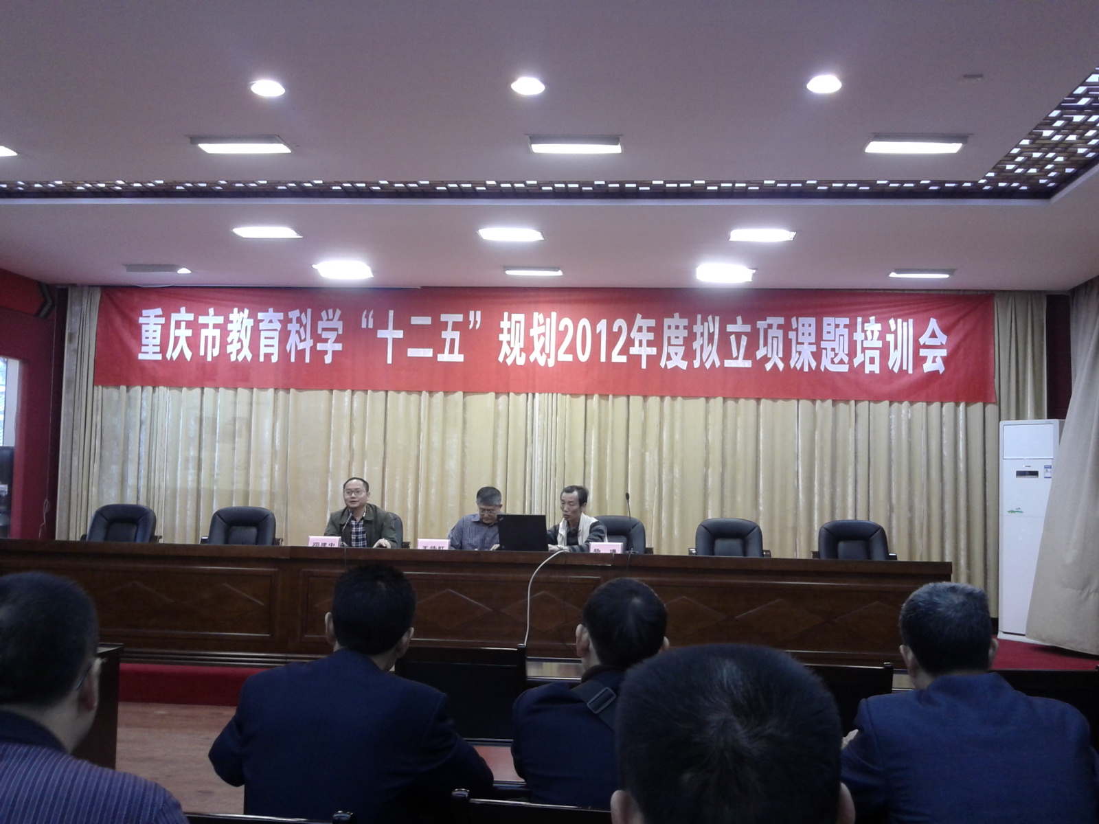 2012年11月1日,上午9点重庆市教育科学“十二五”规划2012年度拟立项课题培训会在重庆市教科院大会议室隆重召开,培训会由重庆市教育科学研究院教育发展研究所副所长邓建中主持,重庆市教育科学研究院副院长王维虹出席并做了《课题研究怎么做》的专题报告,最后重庆市教育科学研究院教育信息部杨博主任对于如何使用教科院课题管理系统做了专题培训。各高校课题负责人及各区县相关部门负责人参加,其中我校三位课题负责人孙宗亮、周如美、蔡学敬参加了课题培训会。