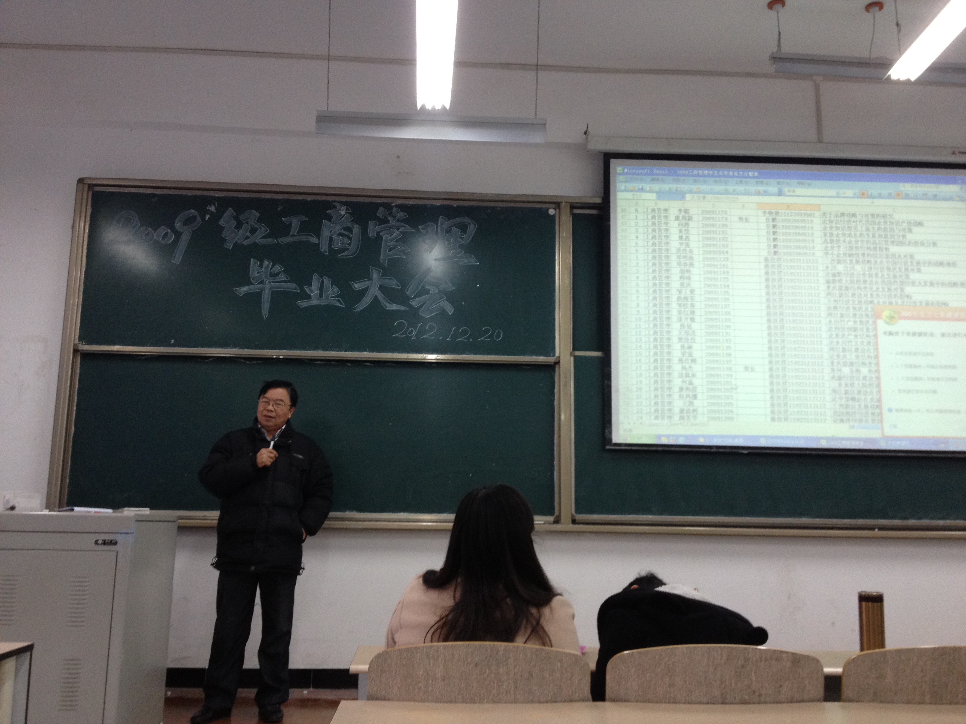 2012年12月20日下午4时,我院工商管理教研室在主教204召开了2009级工商管理毕业大会暨2013届毕业生毕业实习、毕业论文动员大会。工商管理专业教研室主任蒋汉祥教授、张俊杰老师、刘珍老师、贾利娜老师、曾建军老师、李晓艳老师、任鹏老师、胡青华老师及2009级工商管理专业全体同学参加了本次毕业大会,大会由教研室副主任张俊杰老师主持。