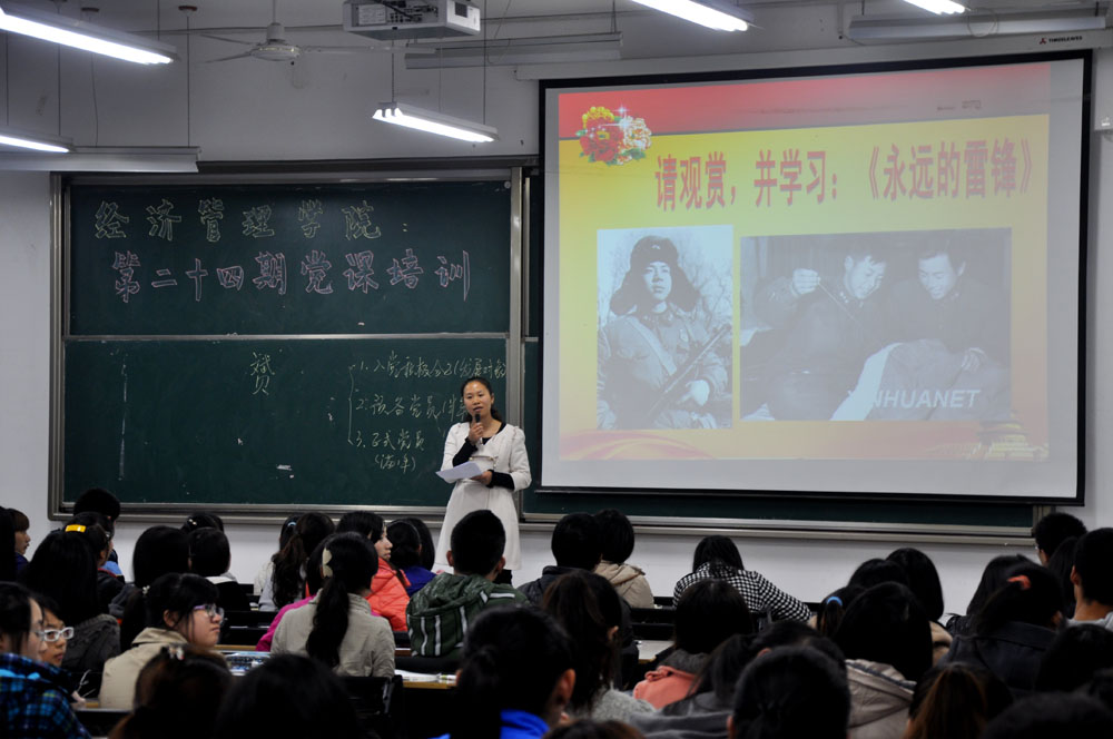 本次党课分别由经管学院学生第一党支部书记杨丹老师和学生第二党支部副书记曾朝红老师进行主讲。两位老师分别就中国共产党的发展历史、党章的主要内容、入党动机、发展党员的程序等内容进行了详细的阐述。通过两位老师的讲解,增进同学们对中国共产党的认知,端正了同学们的入党动机,明确了同学们的前进方向。在两位老师结束讲解之后,又组织全体入党积极分子观看了文献纪录片《永远的雷锋》。该影片加强了同学们对雷锋精神的感知,以促进入党积极分子切实践行雷锋精神,培养为人民服务的意识,争取早日成为一名合格的中共党员。