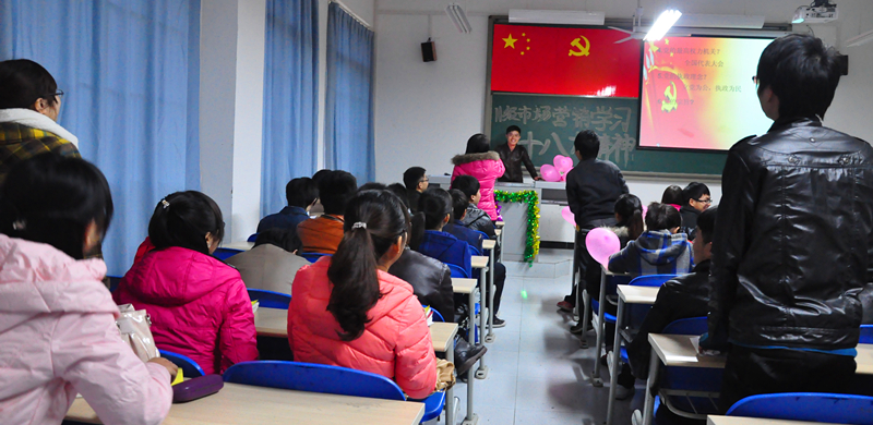 2012年12月4日12:30许,在刘娟老师的正确指导下,经济管理学院2011级市场营销1班于A新103顺利召开学习十八大会议精神主题班会。通过本次主题班会,进一步明确了:“从实际出发,深入贯彻学习党的十八大会议精神。”