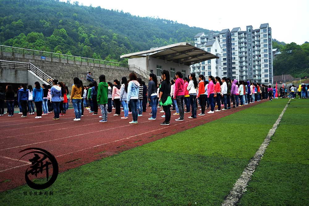 4月9日中午,灰蒙的天空中飘着蒙蒙细雨,此刻田径场内的经管院运动会表演方阵正在有条不紊的练习。整齐的步伐,高昂的气势,响亮的口号。我院党总支书记赵昌龙亲临指导,为经管学子加油助威。