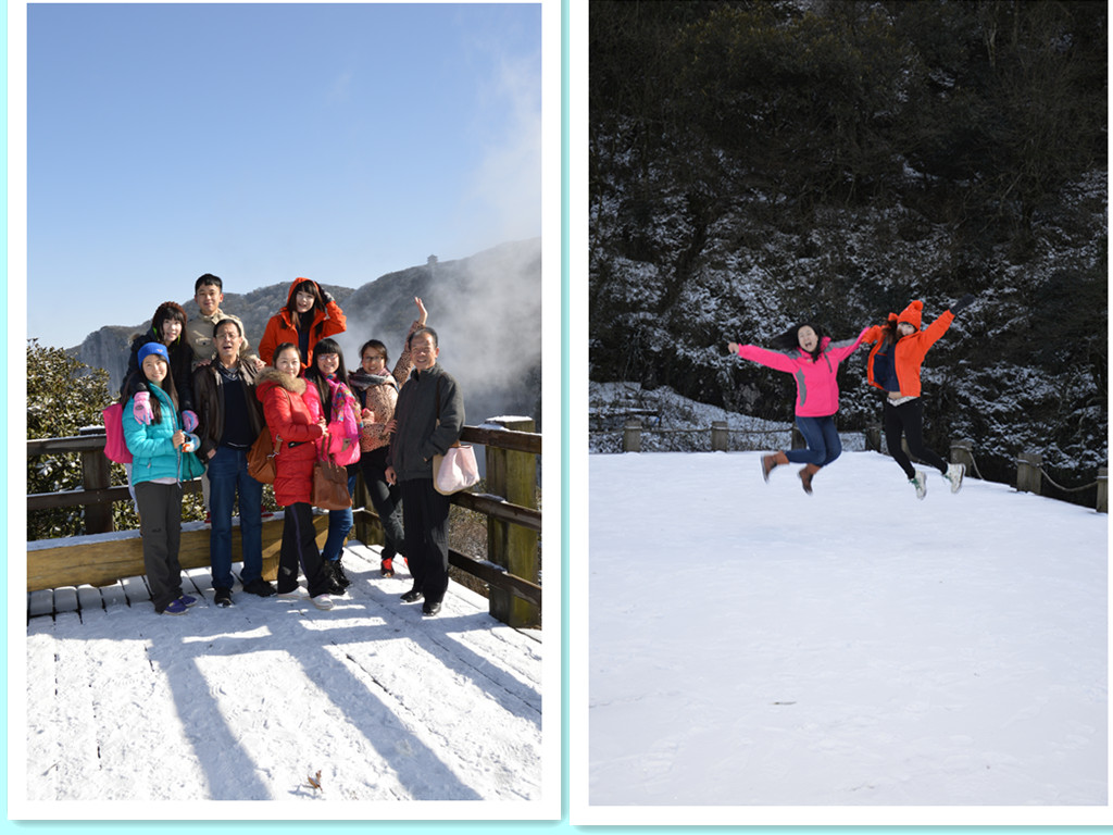 瑞雪兆丰年,我们赶上了金佛山第一场雪。洁白的雪花、红色的枫叶、绿色的竹林、金色的阳光、仙境般的雾气等把金佛山装扮成了童话城堡,显得格外的漂亮。树上、房顶上、道路上、草坪上全都铺上了一层雪白的地毯,将金佛山打造成巴渝特色的南国雪原。金佛山的雪仿佛闪耀着金光,犹如阳光一般照耀着大家,老师们在雪地上、草坪上追逐嬉闹、打雪仗、堆雪人,玩得不亦乐乎,在陶醉大自然的同时也领悟了人生。