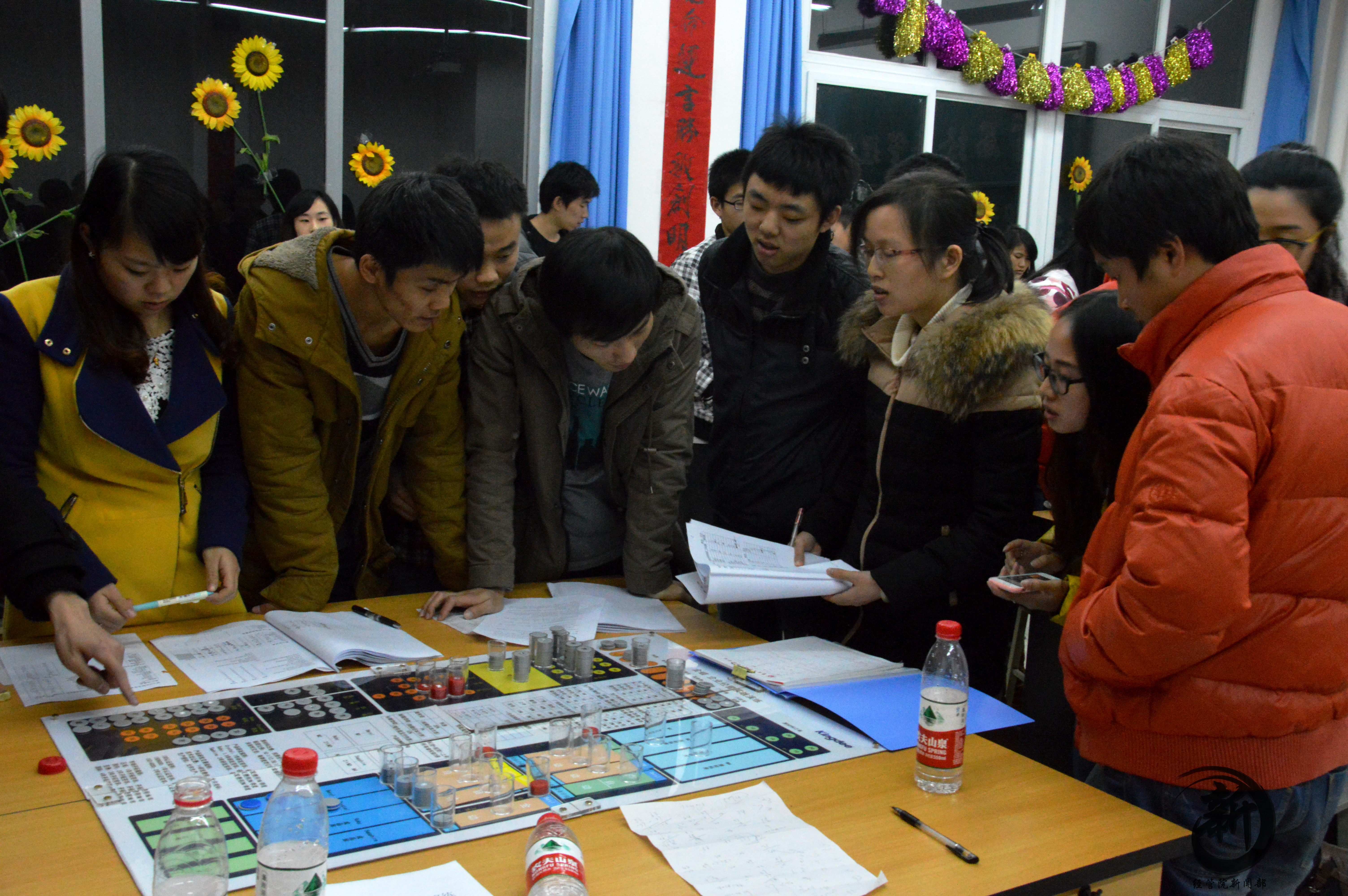整个比赛过程中,各参赛团队运筹帷幄,运用所学专业知识在一方沙盘中开创商业天地。开发新兴销售市场、研发销售产品、拥有自主产权厂房与生产线等皆为选手所面临的艰巨挑战。参赛者缜密思考,从企业决策层、管理层和操作层这三个层面以系统化的管理思想,将虚拟企业的物流、人流、资金流、信息流统一起来进行管理。比赛团队所经营企业间良性竞争激烈、业绩皆连连攀升。模拟运营历时七个年度,每年度耗时一小时。最终风云组摘得此次比赛冠军,龙胜组、ChinaWE组分获第二、三名。