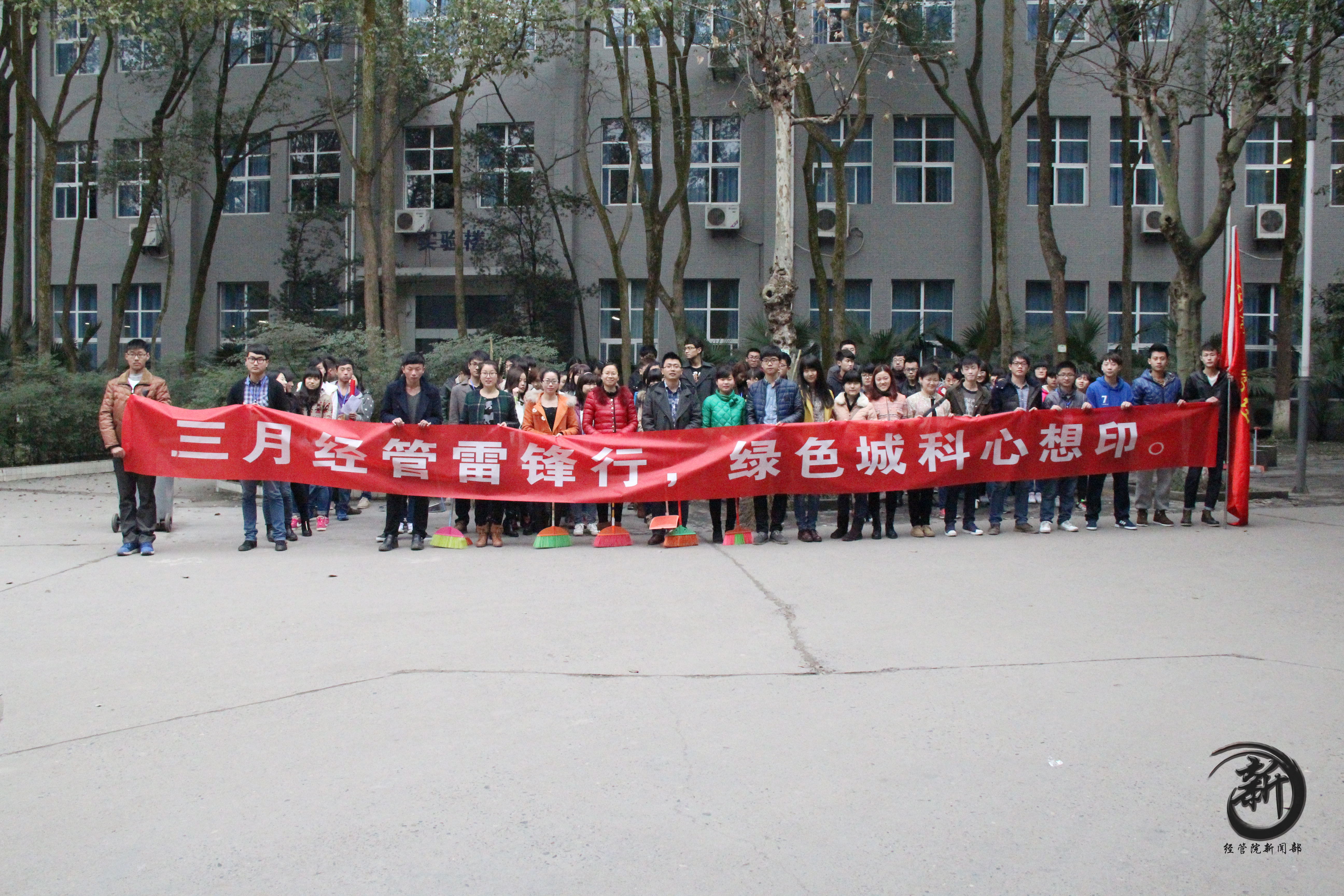 为进一步增强我院学生“服务学校,服务社会,增长才干”的意识,深入开展学习雷锋精神活动,由经济管理学院团总支学生会主办、经管院社工部承办的2014年经管师生学雷锋校园义务清洁活动于3月5日下午16:00,在实验楼热烈开展。经管学院全体辅导员、各部门学生干部、干事等一百余人参加了本次活动。