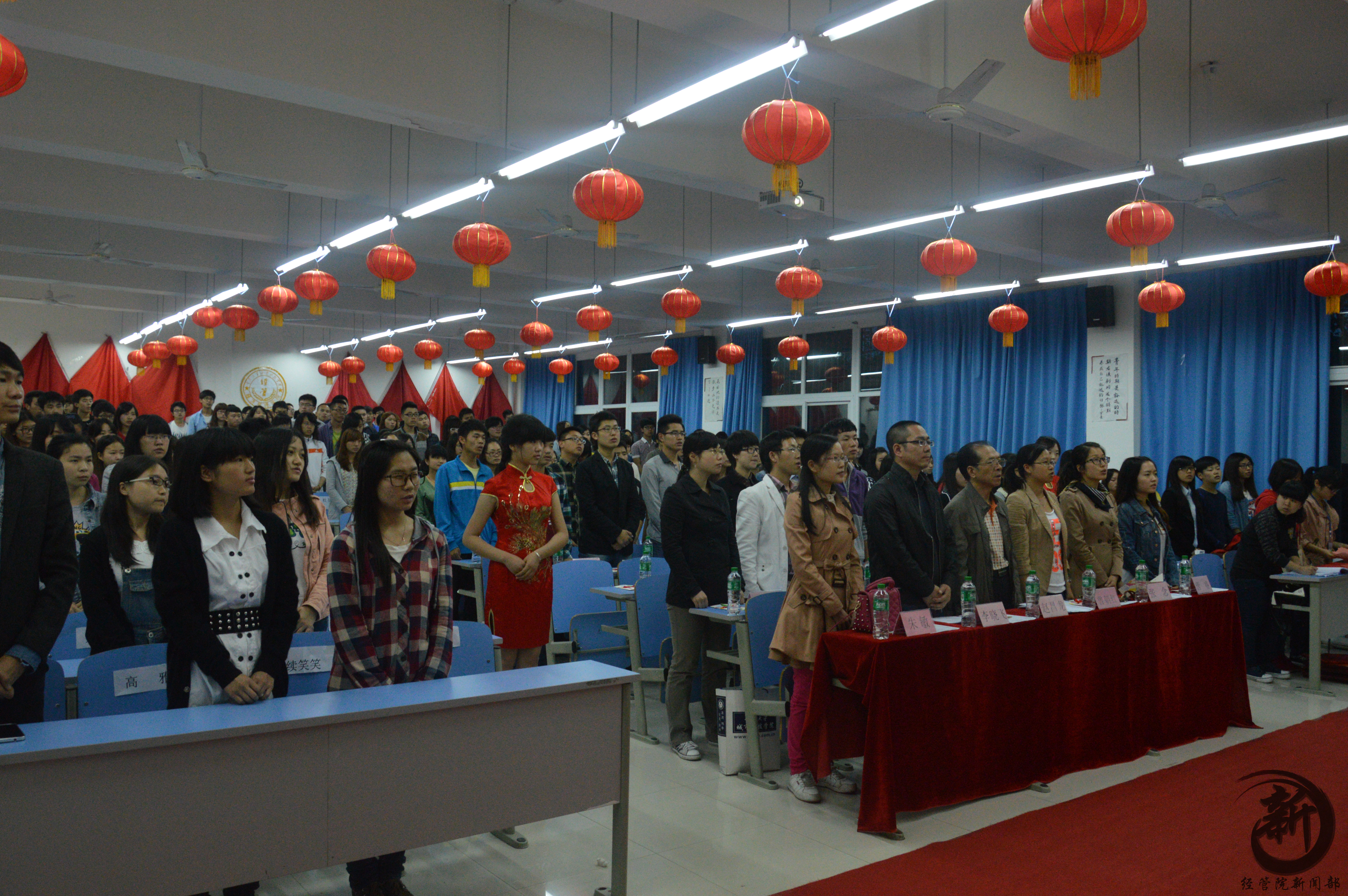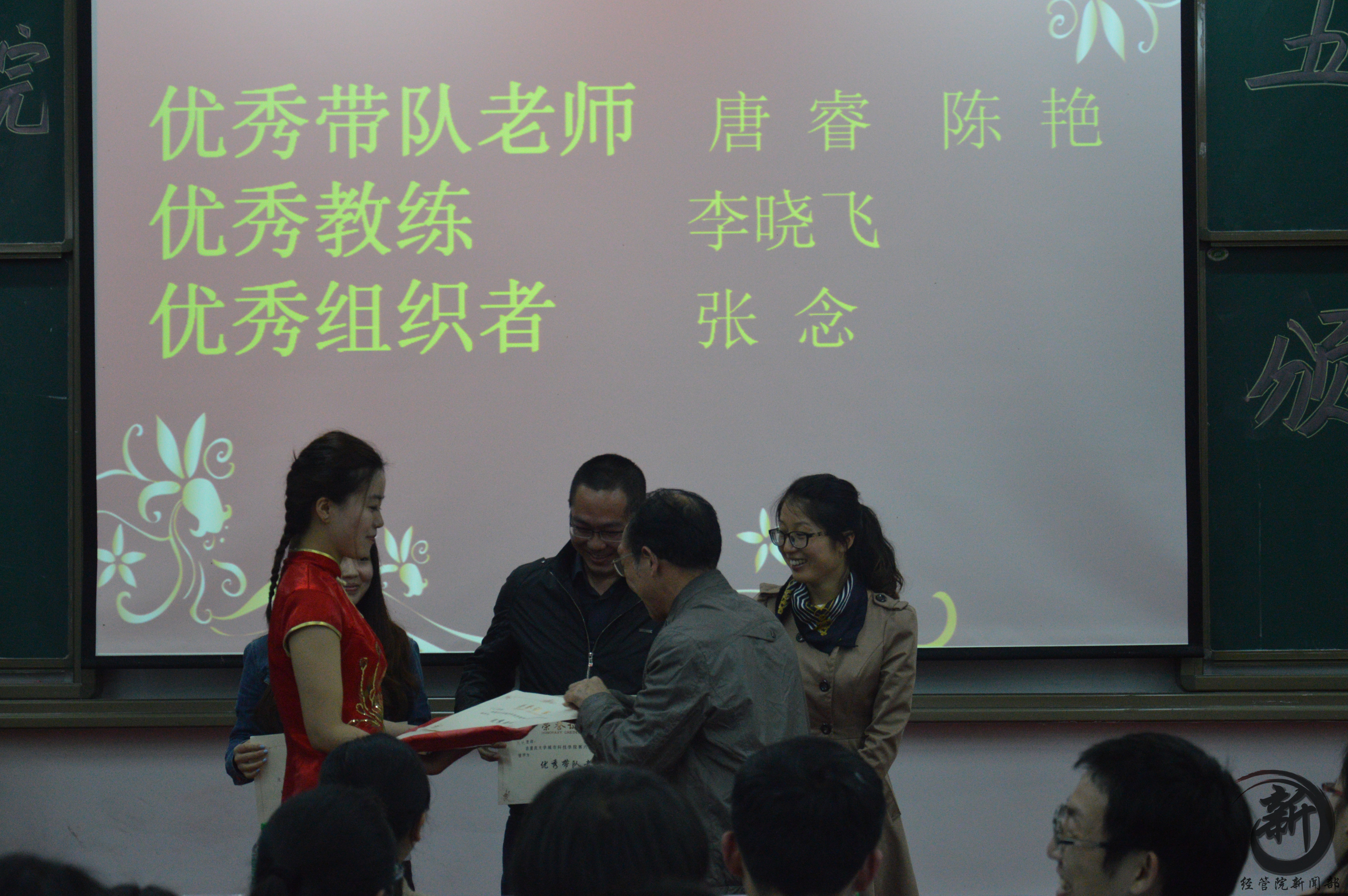 为弘扬“五•四”精神,展现学子风采,2014年度经济管理学院五四表彰暨运动会·寝室文化节颁奖典礼于4月28日于晚上7点半在六教111室隆重举行。经济管理学院党总支书记赵昌龙、学生第二党支部书记李晓飞、第一党支部书记曾朝红、团总支书记张念及各二级学院学生干部特邀出席了本次活动。