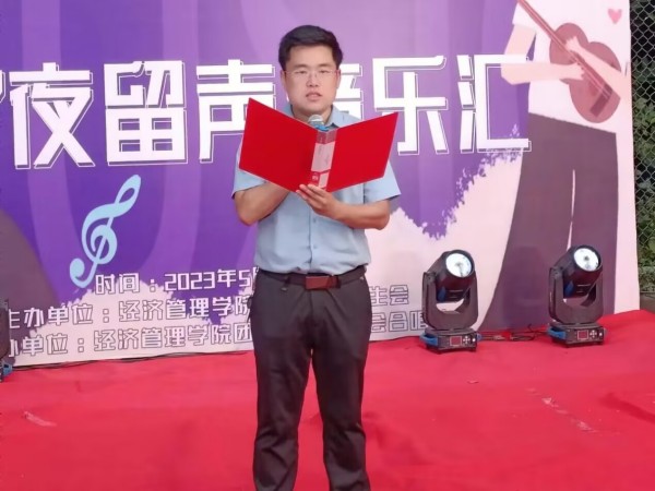 经济管理学院党总支副书记万能也为本次活动致辞,他表示本次“经”夜留声音乐汇,是同学们展现青春魅力的一个舞台。它昭示着一种朝气蓬勃、奋发进取、百折不挠的精神风貌。我院一直以来把校园文化建设作为提高办学品味的一项重要内容,有力培养了学生的综合素质,发展了学生特长,充实了学生的精神世界,推动校园精神文明建设。