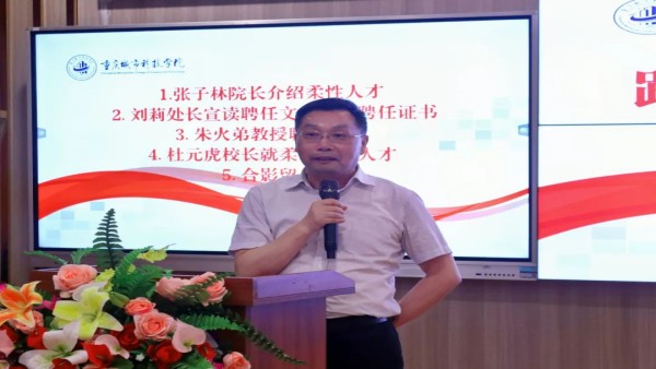 会议伊始,张子林代表学院全体师生对朱火弟教授的到来表示热烈的欢迎,并对朱火弟教授进行了详细介绍。随后,刘莉宣读学校聘任文件,杜元虎校长为朱火弟教授颁发聘书。