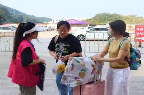 艳阳高照,宿舍阿姨和校园车叔叔穿梭在宿舍楼之间,快速引导新生明晰对应楼层,为新来的同学搬运行李,指引道路,他们用最周到的行动欢迎萌新们。
