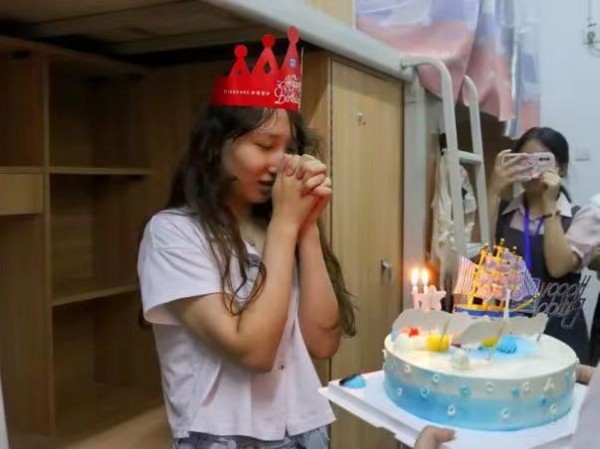 集体生日,与你陪伴。当开学日和生日撞个满怀,惊喜便不期而至,在2023年专升本新生中,有2名同学在报到当天过生日,经济管理学院为“小寿星”们精心准备了一份属于他们的生日惊喜。除了生日蛋糕、生日帽、生日小礼物,师生们还围坐在一起,共同唱起来生日歌,拉近了师生之间的距离,让两位同学感受到了学校的温馨和甜蜜。