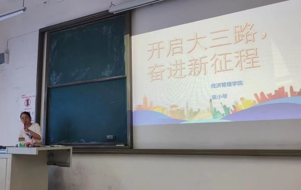 为深入贯彻落实立德树人根本任务,教育广大青年树立远大理想,切实做好新学期班风与学风建设工作,增强学生安全防护意识,引导学生做好大学规划,以热情饱满、斗志昂扬的精神面貌,更快、更好地投入到大三新学年,9月7日下午,经济管理学院2021级工商管理1-7班与资产评估1班于经管大楼211教室开展“开启大三路,奋进新征程”主题班会,本次班会由辅导员袁小琴主持。