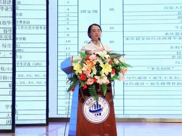 大会伊始,学生第五支部书记刘芳宏老师对学生手册进行了详细解读,对新生日常生活进行了规范和引导,以此加强新生公寓管理服务工作,并从各方面强调了学生要遵循良好的生活秩序。接着,她详细介绍了学校奖助体系,并进一步勉励所有新生要做在实处,止于至善,熟练掌握专业知识和基本技能,在攀登知识高峰中追求卓越。