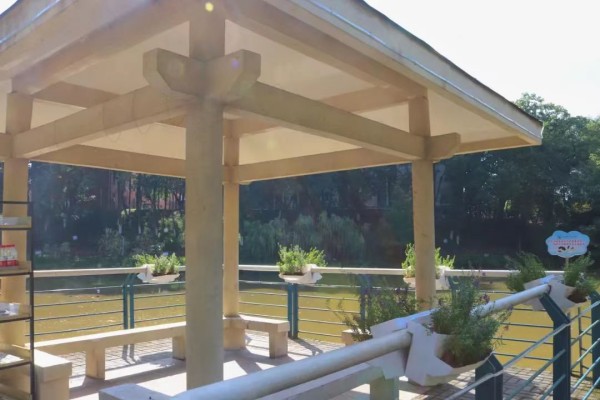 再往前走,便可以看到城科的湖。湖面上蜿蜒着凉亭,阳光正好,微风不燥,夏风送来阵阵清香。湖周边环绕着图书馆、一食堂与小广场,开阔的视野绝对出片,同学们每天都可以在这欣赏粼粼波光,坐看云卷云舒。