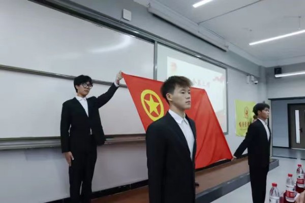会议伊始,全体参会人员迎团旗,唱共青团团歌,歌声嘹亮,铿锵有力,尽展团学青年的朝气蓬勃。