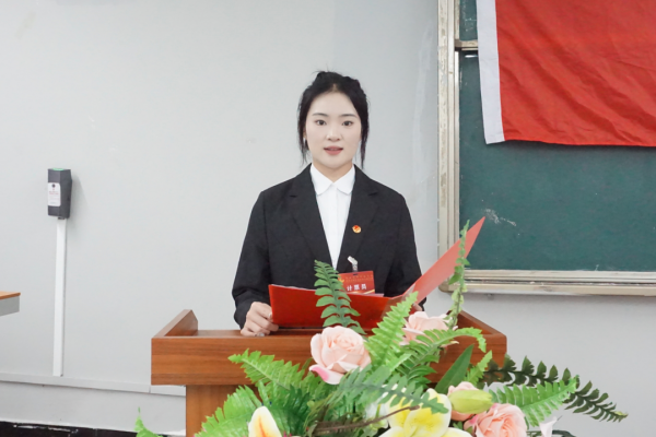 临近会议尾声,由党总支书记、副院长冯鑫上台致闭幕词,他提出希望同学们志存高远、不忘初心、砥砺前行,脚踏实地跟党走,朝着未来不断奋进。