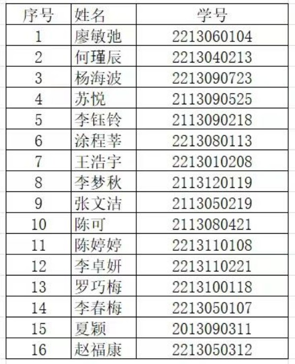 根据《中国共产青年团章程》和《中国共产主义青年团发展团员工作细则》的有关规定,为进一步壮大共青团员的队伍,确保发展团员的规范性和团员质量,充分发挥共青团组织在青年学生成长发展中的重要作用,经本人申请、团课培训、各团支部考察,结合基础团务知识以及现场答辩等综合表现,由经济管理学院团总支成立的评选委员会本着公平、公正的态度进行考核,拟定廖敏弛、何瑾辰等16名同学为新发展团员,现将名单公示如下: