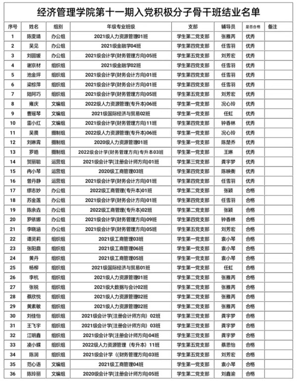 经济管理学院关于第十一期入党积极分子骨干班结业名单的公示