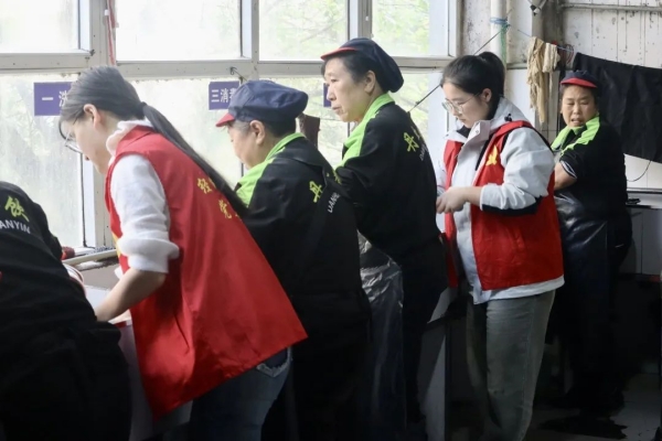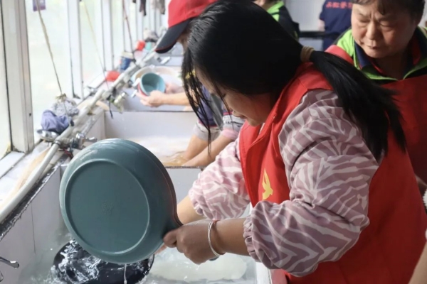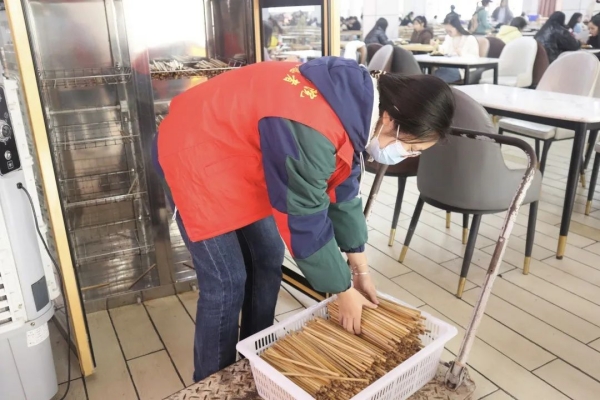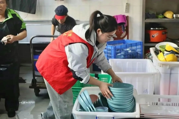 坚定理想信念,争做实干人才。在支部委员的组织带领下,各发展对象身穿红马甲,带着饱满的热情与认真的态度,在食堂午间人流量高峰来临前,到达一食堂二楼,对脏乱的餐桌进行整洁处理;在后厨的洗碗槽与备菜区,帮助后勤阿姨们一同清洗已经使用过的餐盘,将清洗完成的餐盘放入指定地点。整理食堂的工作看来轻松,实则不易,整洁有序的用餐环境离不开食堂工作者们的辛勤付出。活动结束后发展对象们纷纷表示,在之后的生活中定会更加注意个人在公共用餐环境的卫生问题,将志愿服务精神贯彻到自己的生活中去。