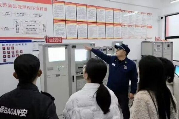 强化安全教育,勇担消防责任。随后,在肖汀同志的带领下,大家参观了学校消防站。肖汀同志讲到,学校目前已建有1个消防应急指挥中心,2个区域消防监控室,2个校园微型消防站,1辆消防水罐车,安装了学生公寓防翻越红外报警、实验室烟感、红外探测报警等装置,配备了消防巡逻车辆、消防器材运送车辆等,先后多次荣获区级、市级荣誉,2022年获评“第六届全国119消防先进集体”,得到消防管理部门的支持和肯定。学校消防站始终践行以全校师生安全为中心,以安全基础建设为重点,以智慧消防建设为主线,以消防宣传教育为助力,坚定扛起新时代责任使命,全面筑牢火灾防控底线红线生命线,从根本上保障全校师生的生命财产安全。
