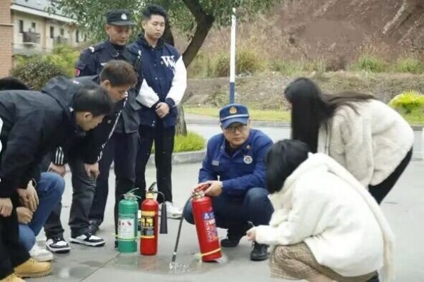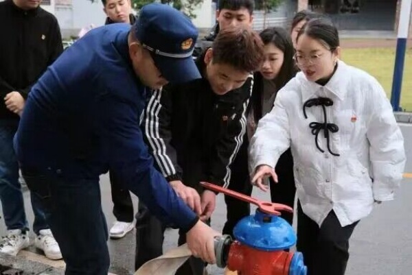 强化消防培训,夯实实战基础。之后,肖汀同志向党员同志们展示三种不同灭火器的使用步骤。他详细介绍了及时扑灭初起火灾的重要性,着重讲解便携式干粉灭火器的适用场景、使用要点以及方式方法,以“一提、二拔、三握、四压”的基本动作进行全方位展示。同时强调使用灭火器时,灭火人员需要站在三米开外的上风处对准火的根部集中灭火。党员同志们踊跃参与、兴致高昂,在消防同志的帮助下对消火栓进行了模拟操作,进一步掌握了消火栓使用方法,增强了应对火灾紧急情况能力。