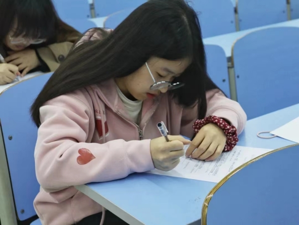 本次笔试采取闭卷方式,共分为单选、多选、判断题、论述题四个部分,考查内容以党史、党章和党的基本理论知识为主线,围绕习近平总书记系列讲话精神、党的二十大等时政热点展开,对发展对象的政治理论素养进行重点考查。发展对象依次间隔而坐,态度端正,认真答题,现场考风严正,纪律严明,展现出良好的学习作风与端正的考试态度。