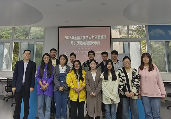 在人力资源管理系薛章林、唐军、杜明月等老师的积极组织与悉心指导下,经过校赛选拔,最终由21级人力资源管理专业的励乐璇、王明菊、张丽萍、李杭和23级人力资源管理(专升本)专业的李辰晨、柳红英、23级市场营销专业的王朝瑞、喻江林等同学代表学校参加了重庆市的决赛。
