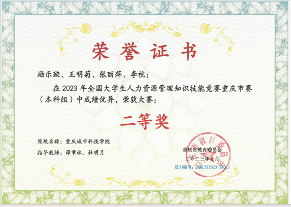 城科学子在“2023年全国大学生人力资源管理知识技能竞赛重庆市赛”中再获佳绩