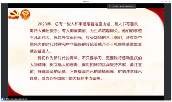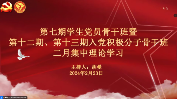 为充分发挥先进典型示范引领作用,以榜样为镜,向先进看齐,不断提高入党积极分子责任意识和思想道德素质,2月23日中午,经济管理学院学生党员骨干班暨入党积极分子骨干班于线上(腾讯会议)开展二月集中理论学习。本次理论学习由胡曼同学主持、朱鑫同学主讲,骨干班指导老师文思未及全体成员参加。
