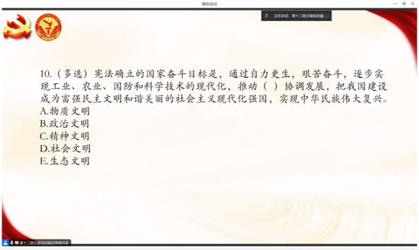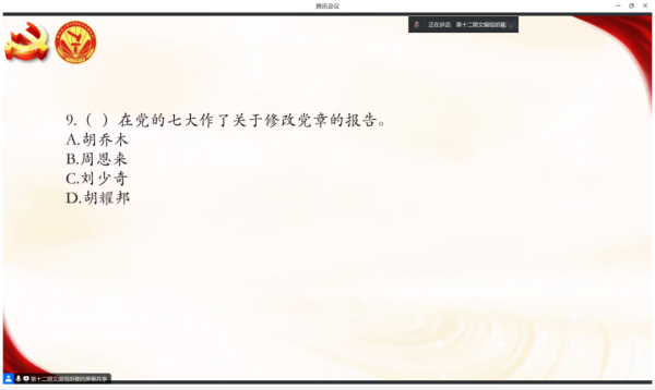 凝心聚力炼党性,夯基铸魂强理论。紧接着,胡曼同学结合本次理论学习的内容对参会成员进行理论知识考察。大家认真审题、细心作答,充分展现了扎实的理论基础和丰富的知识储备。