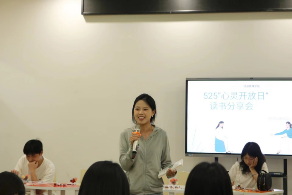为进一步加强与巩固我校的心理健康教育,提高学生心理健康水平,同时鼓励学生通过分享感悟、与他人建立链接产生共鸣,同时建立良好的人际关系,我院心理工作站于2024年5月23日在心理中心团辅教室组织开展了5·25系列特色活动——“阅读书 悦心灵 説分享 乐成长” 心灵开放日读书分享会。