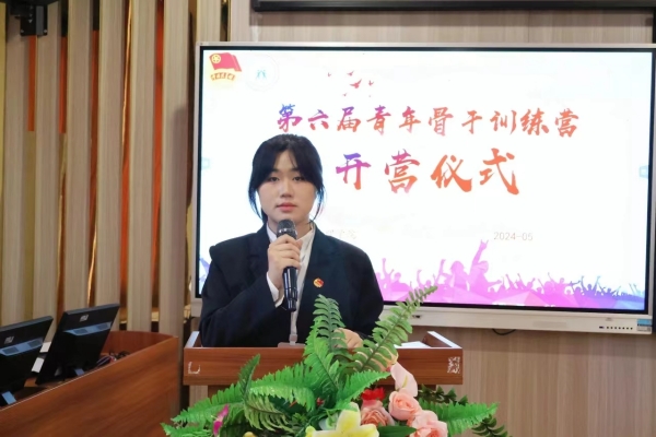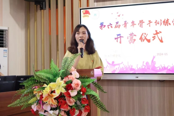 仪式伊始,团总支书记龚宇梦致开营词,她希望营员们能珍惜此次宝贵的培训机会,以锤炼自身意志,练就过硬本领为目标,不断提高自身思想政治素质、政策理论水平、实践能力和组织协调能力,积极体现青年作为,体现青年担当。