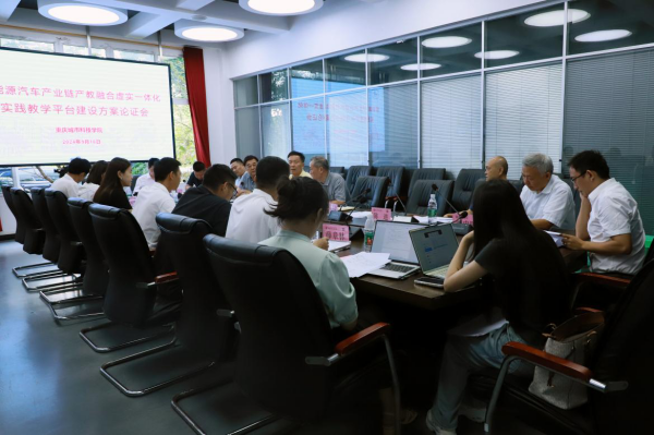 2024年9月10日“新能源汽车产业链产教融合虚实一体化实践教学平台”建设论证会于经管大楼路演室进行,该平台由经济管理学院牵头申报,已经重庆市教育委员会批准立项建设,是我校第一个市级教学平台,学校高度重视。参加本次论证会的人员有理事长刘学民、校长黄宗明、教务处常务副处长刘嘉敏、现代教育技术中心主任周俊成及经济管理学院、电气工程与智能制造学院和人工智能与大数据学院的多位领导、专家,除学校有关主要领导外,参加论证会的还有新道科技股份有限公司代表。