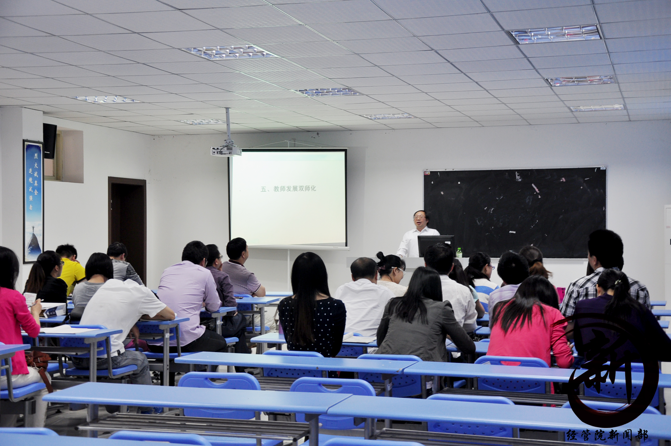 2013年5月30日,经济管理学院全院教职工于第二行政楼101举行经济管理学院教学工作例会,并特邀人力资源管理教研室主任刘定祥教开展关于“教学转型与教师发展”专题讲座。