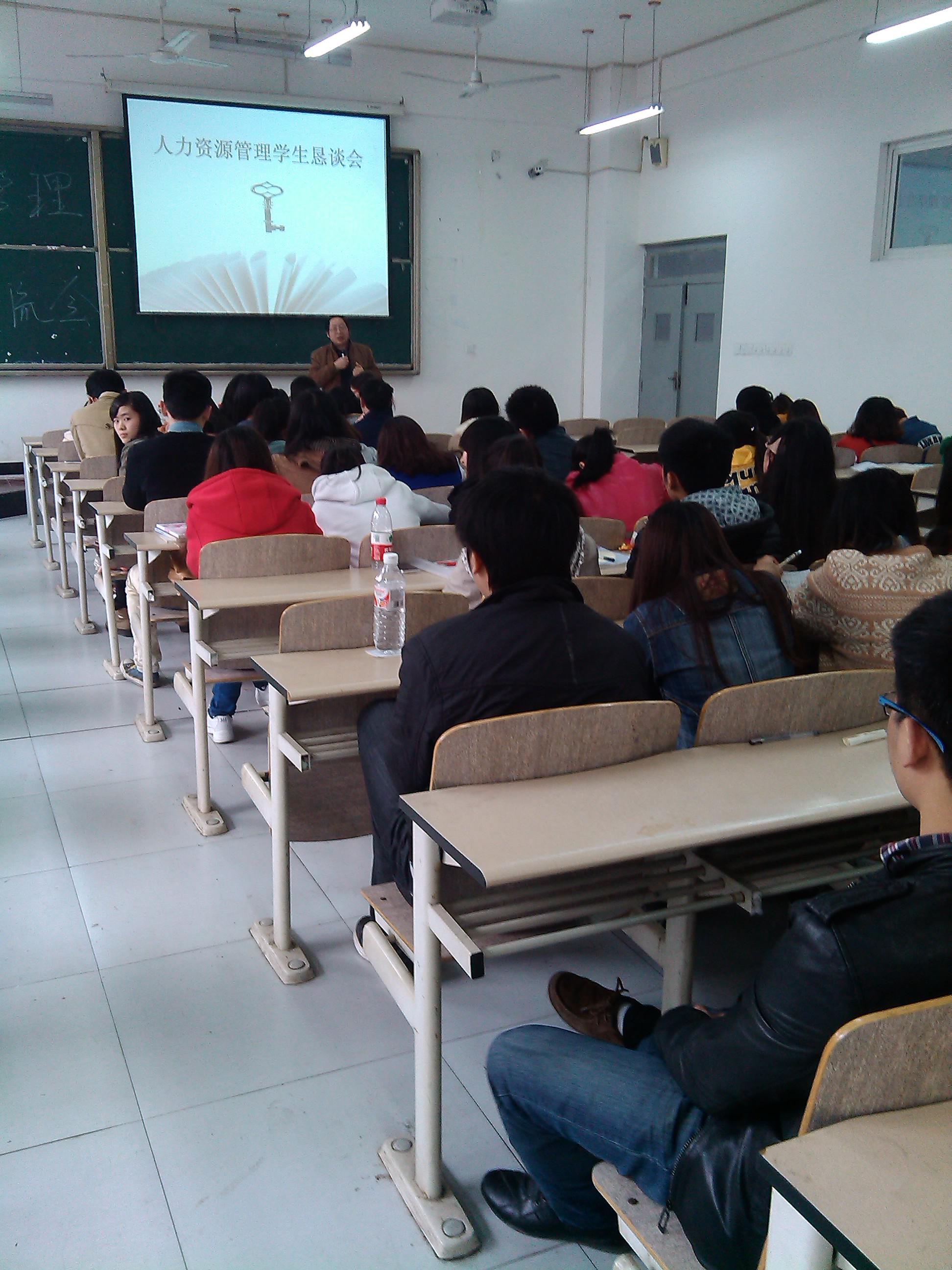 3月12日中午1点,经管学院人力资源管理师生恳谈会在主教209成功举行。人力资源教研室全体教师,2011级、2012级和2013级部分学生参加了此次恳谈会。