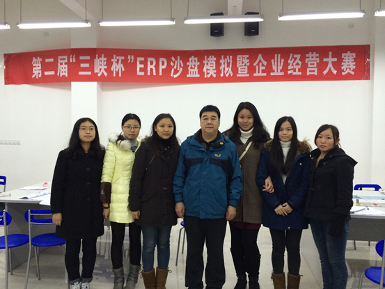 为更进一步促进我校学生对企业管理的认识,增强企业竞争观念,强化“应用型人才”的培养观念,保持学以致用的“应用型人才”培养模式。2014年12月6号六教109室,“经管学院第二届“三峡杯”ERP沙盘模拟企业经营大赛”在张子林院长宣布声中正式拉开了竞赛的序幕。经管学院张子林副院长,工商管理教研室主任刘建国教授和及副主任张俊杰老师出席了本次大赛。