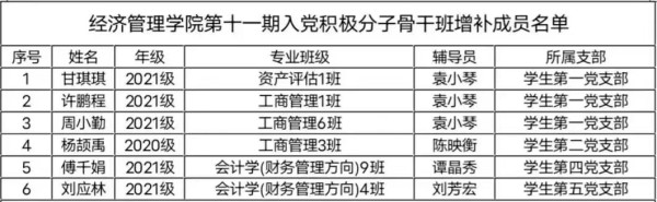 经济管理学院关于第十一期、第十二期入党积极分子骨干班成员增补名单的公示