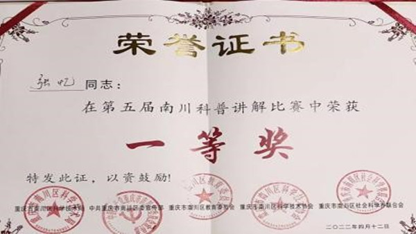 重庆市南川区“科普讲解大赛”一等奖,正在备战省市决赛