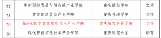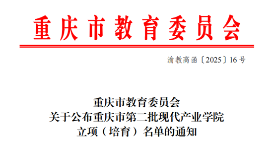 近日,重庆市第二批现代产业学院立项名单正式公布。重庆城市科技学院人工智能与大数据学院申报的“新E代数字智能信息技术产业学院”成功获批立项。这是我校在深化产教融合、服务地方产业方面取得的重要成果。
