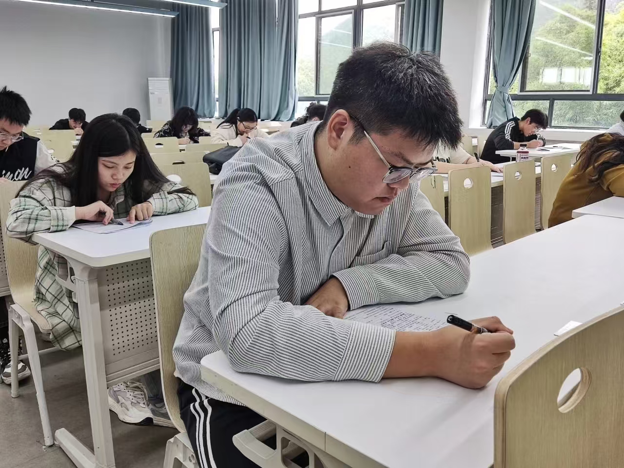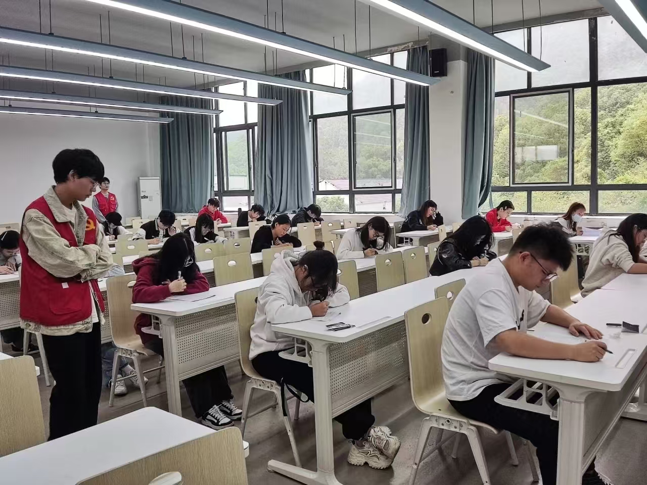 入党积极分子们严格遵守考风考纪,认真答题,展现了良好的精神风貌。监考的党员师生认真履行职责,来回巡视,密切关注着考场内的动态,确保在公平、公正、公开的考试环境中进行作答。