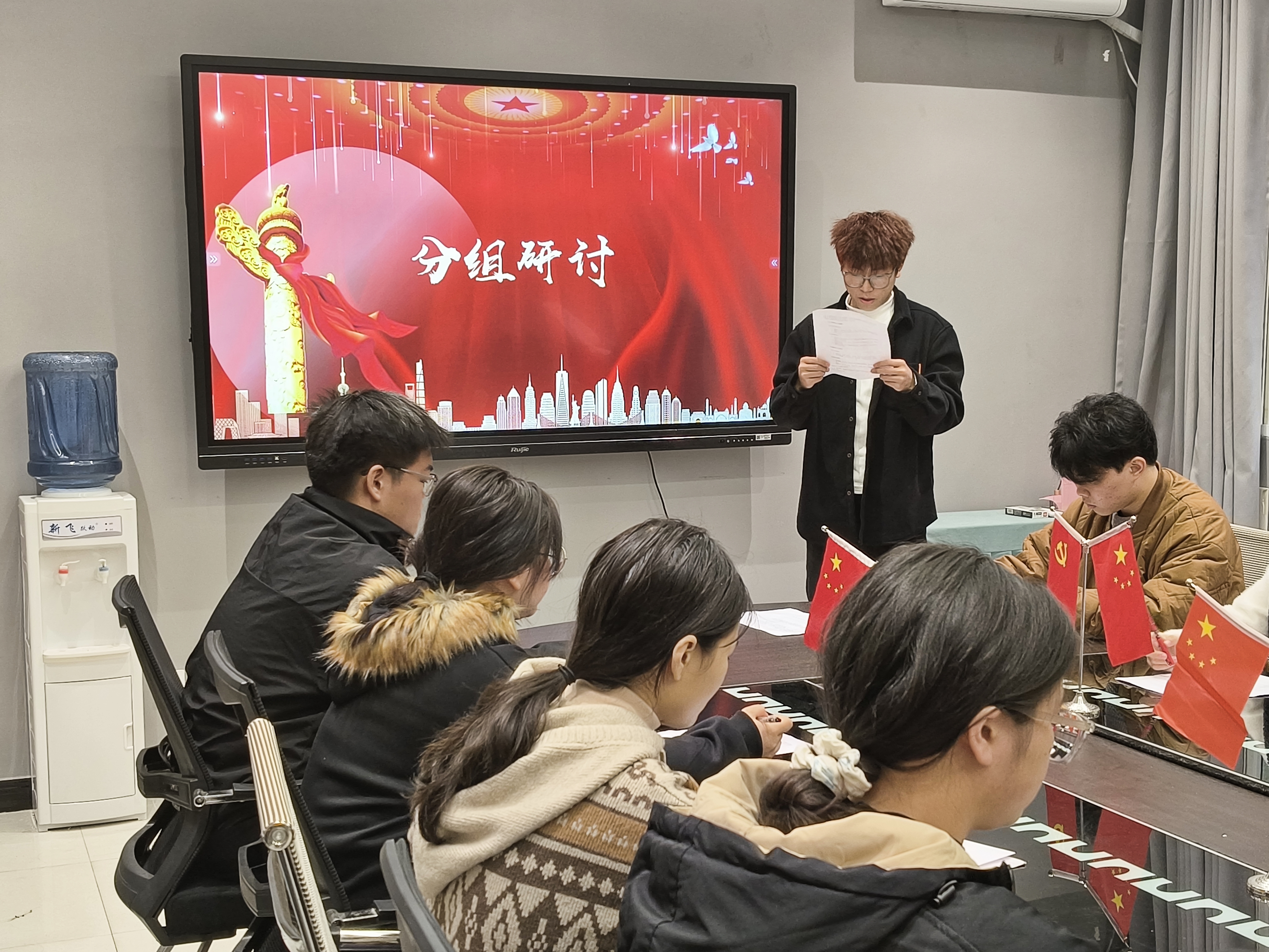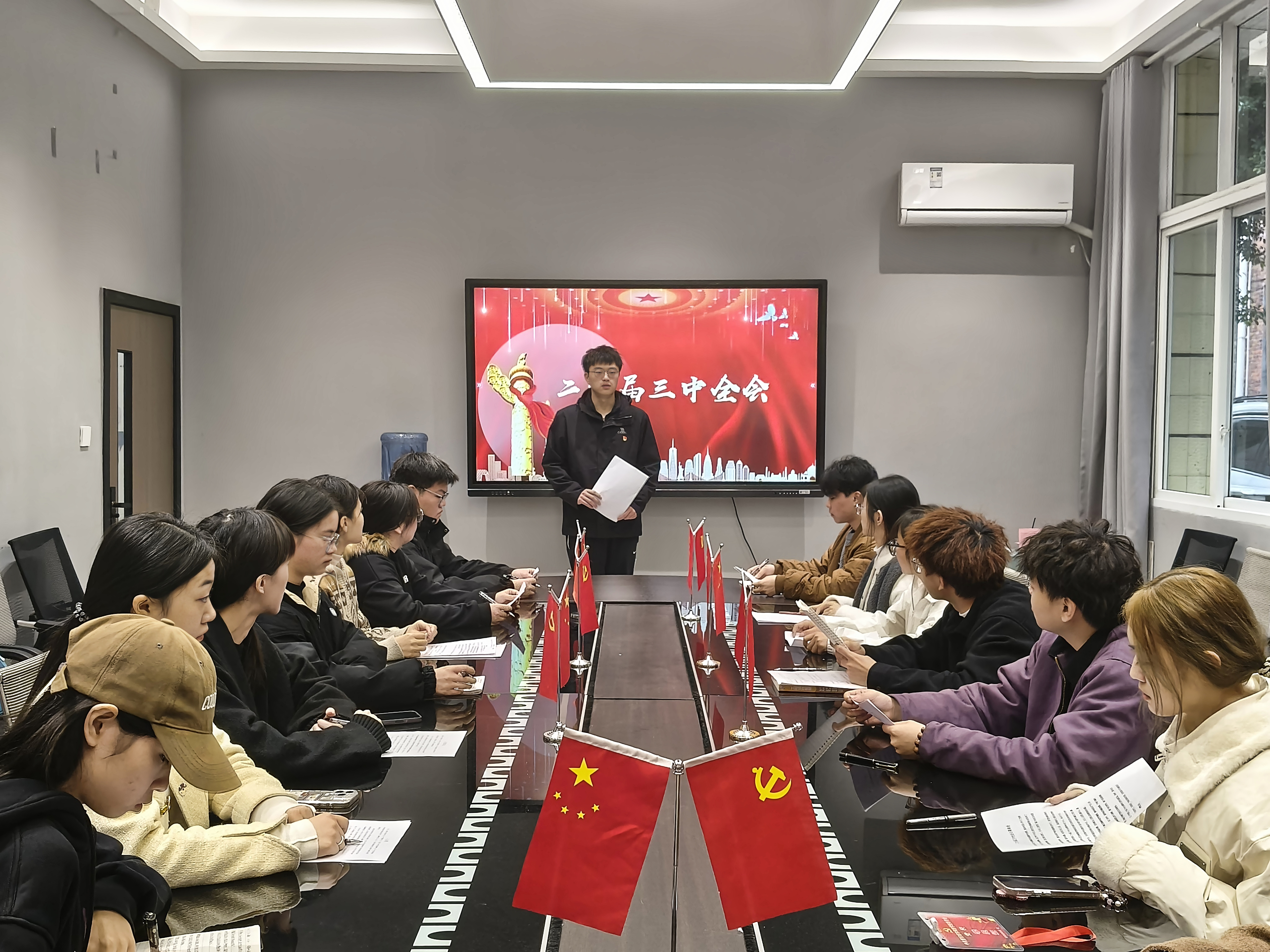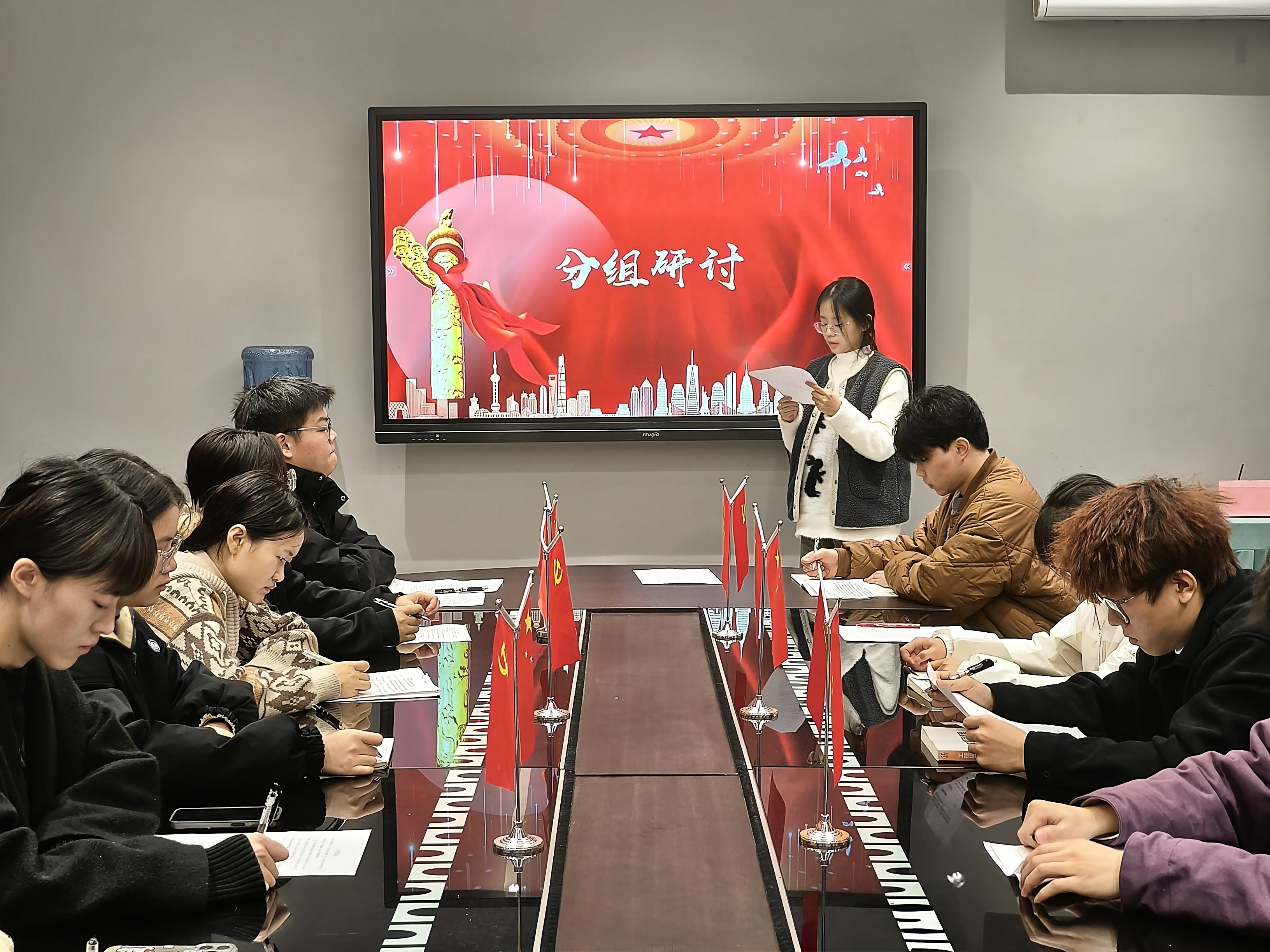 会议开始,主持人介绍了本次分组研讨的主题——“二十届三中全会”,并强调了会议纪律。随后,曾玲老师发言,她强调作为发展对象,应当深入学习二十届三中全会精神,要将其融入到日常的学习生活中,充分发挥模范带头作用,积极主动地宣传全会精神,以实际行动展现出新时代青年对党的忠诚与担当。