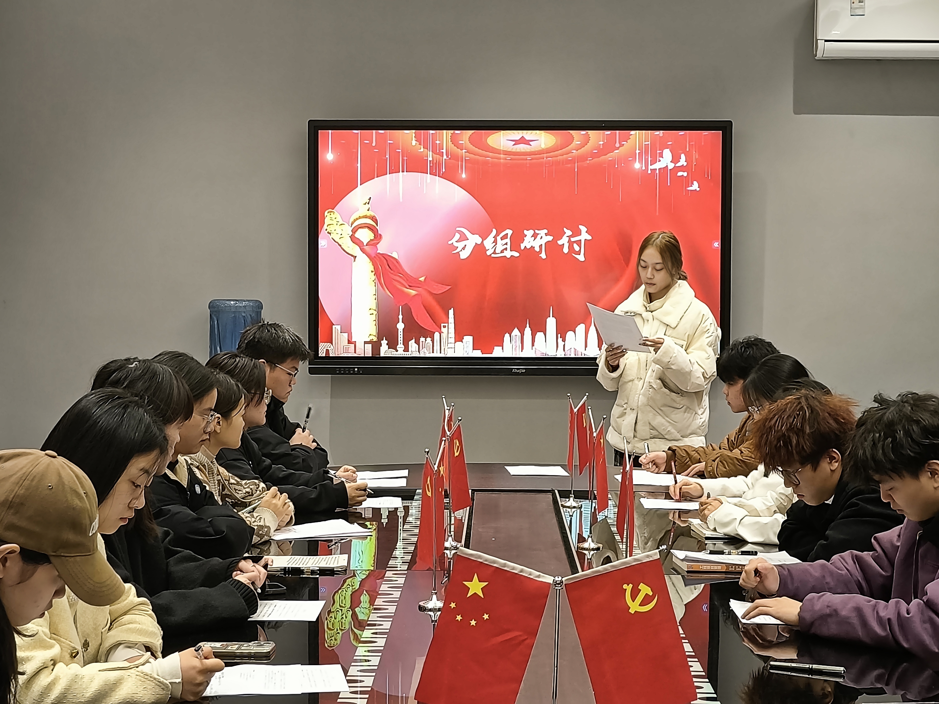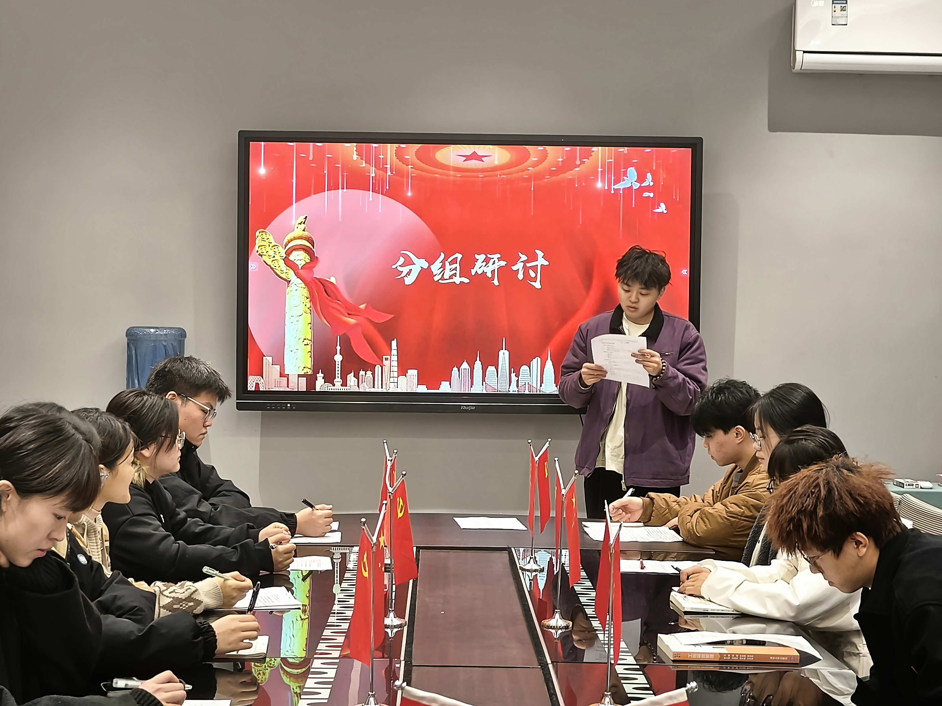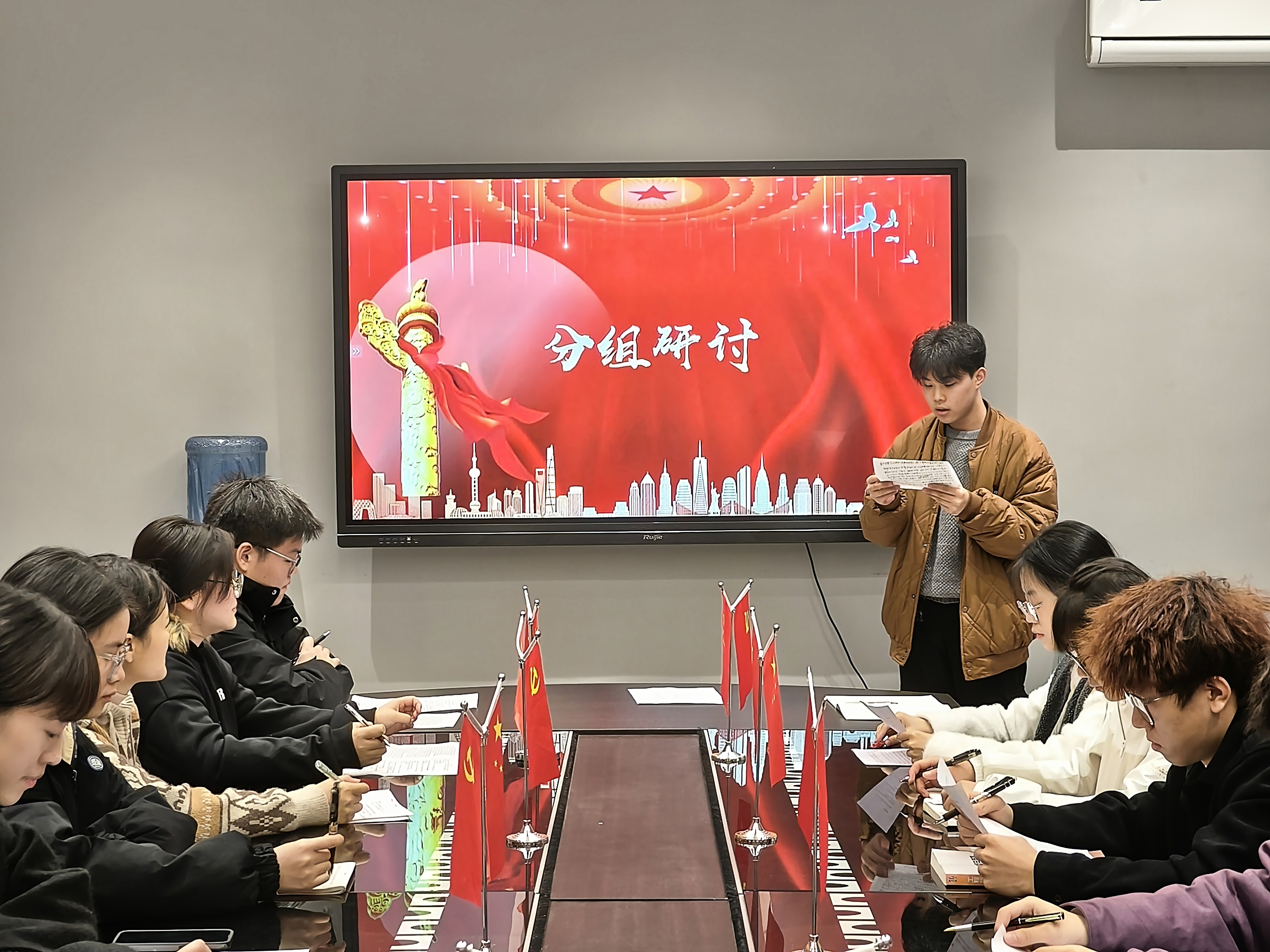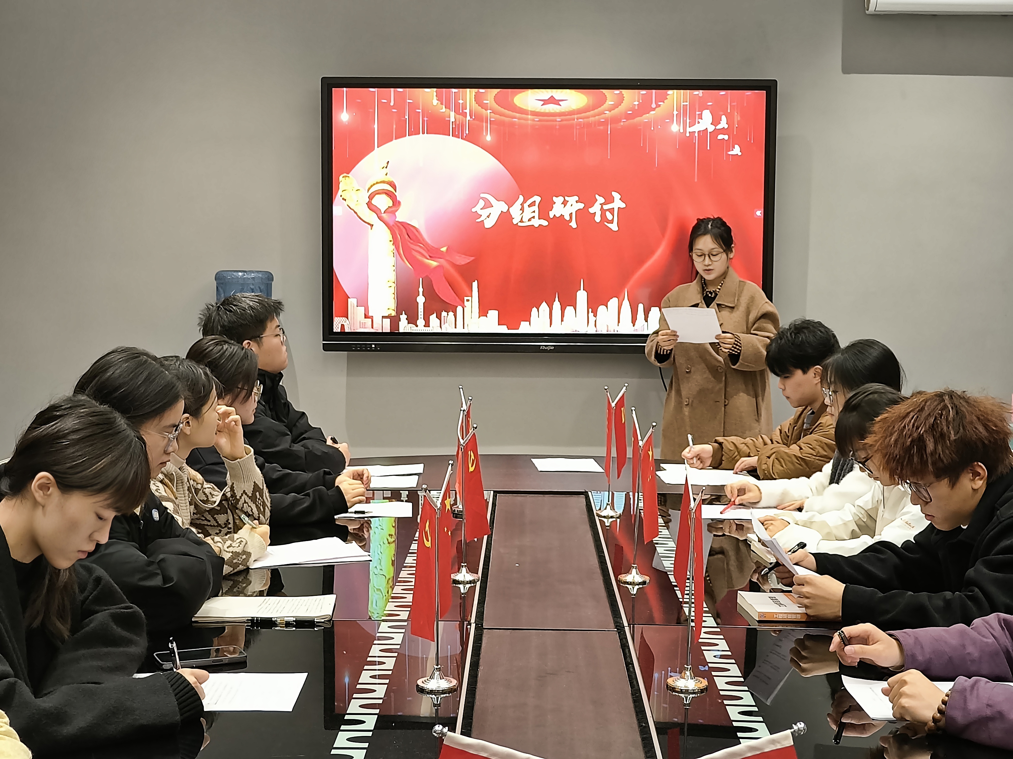 会议开始,主持人介绍了本次分组研讨的主题——“二十届三中全会”,并强调了会议纪律。随后,曾玲老师发言,她强调作为发展对象,应当深入学习二十届三中全会精神,要将其融入到日常的学习生活中,充分发挥模范带头作用,积极主动地宣传全会精神,以实际行动展现出新时代青年对党的忠诚与担当。