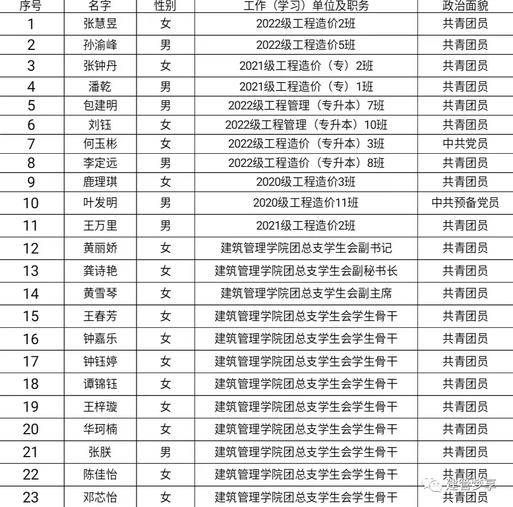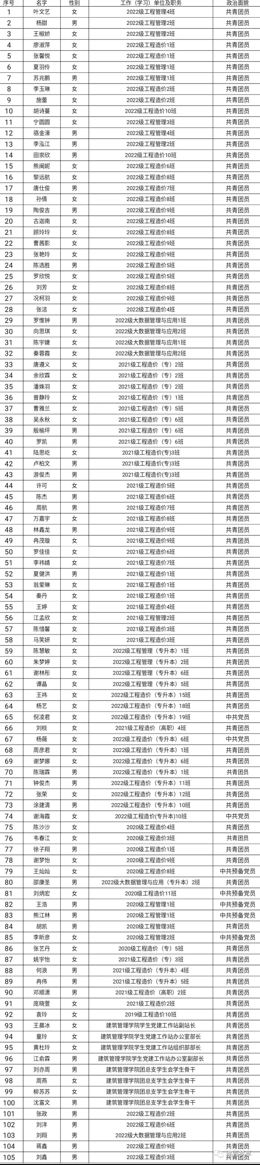 根据《关于开展2023年“五四”评优活动的通知》建筑管理学院坚持严格的推优标准,遵守着公平、公开、公正的原则,现将我院“五四”评优活动表彰的名单进行公示,接受全院师生监督。