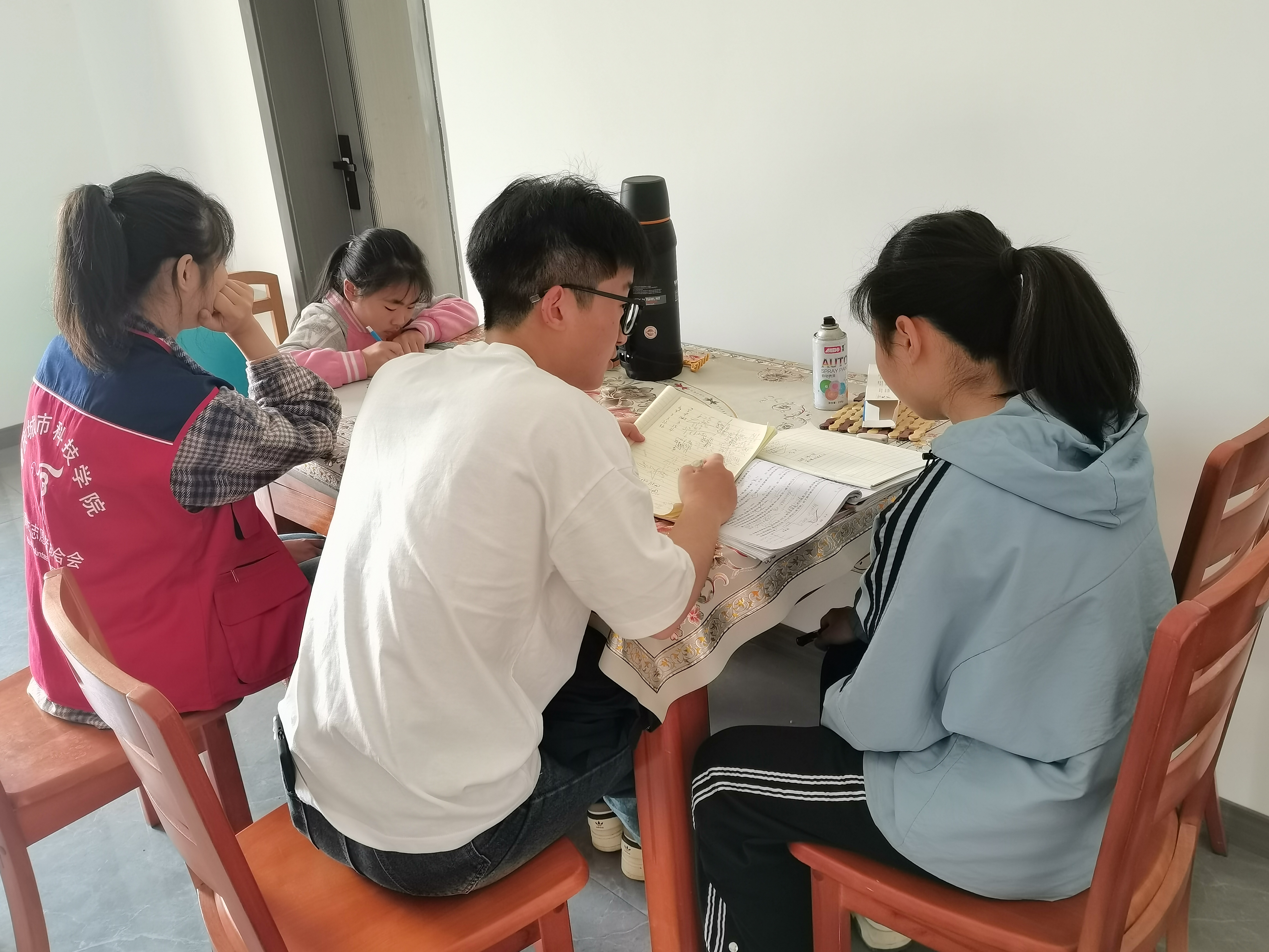 上午,志愿者们分成两批准时前往永钢村便民服务中心以及小朋友们家中。参与“阳光青莓”青少年之家志愿活动的志愿者们在服务中心与小朋友们进行了学业辅导。参与“给梦一双翅膀”爱心家教的志愿者们则去往各个小朋友家中帮助他们的学习。志愿者们先是了解小朋友们本周的学习情况,之后便开始辅导小朋友们的课后作业,检查错误并解答疑惑。在与志愿者们融洽地相处中,小朋友们也慢慢敞开心扉,敢于大胆表达自己的想法并询问起来。