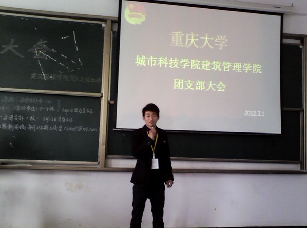 为了更好的开展并加快团支部的建设,更好地落实的建管院精神政策,使学院走向更高的管理水平,调动全院师生的积极性与工作热情。于2012年3月1日中午12点30分,重庆大学城市科技学院建筑管理学院团总支学生会在主教207召开了第一次团支部大会。