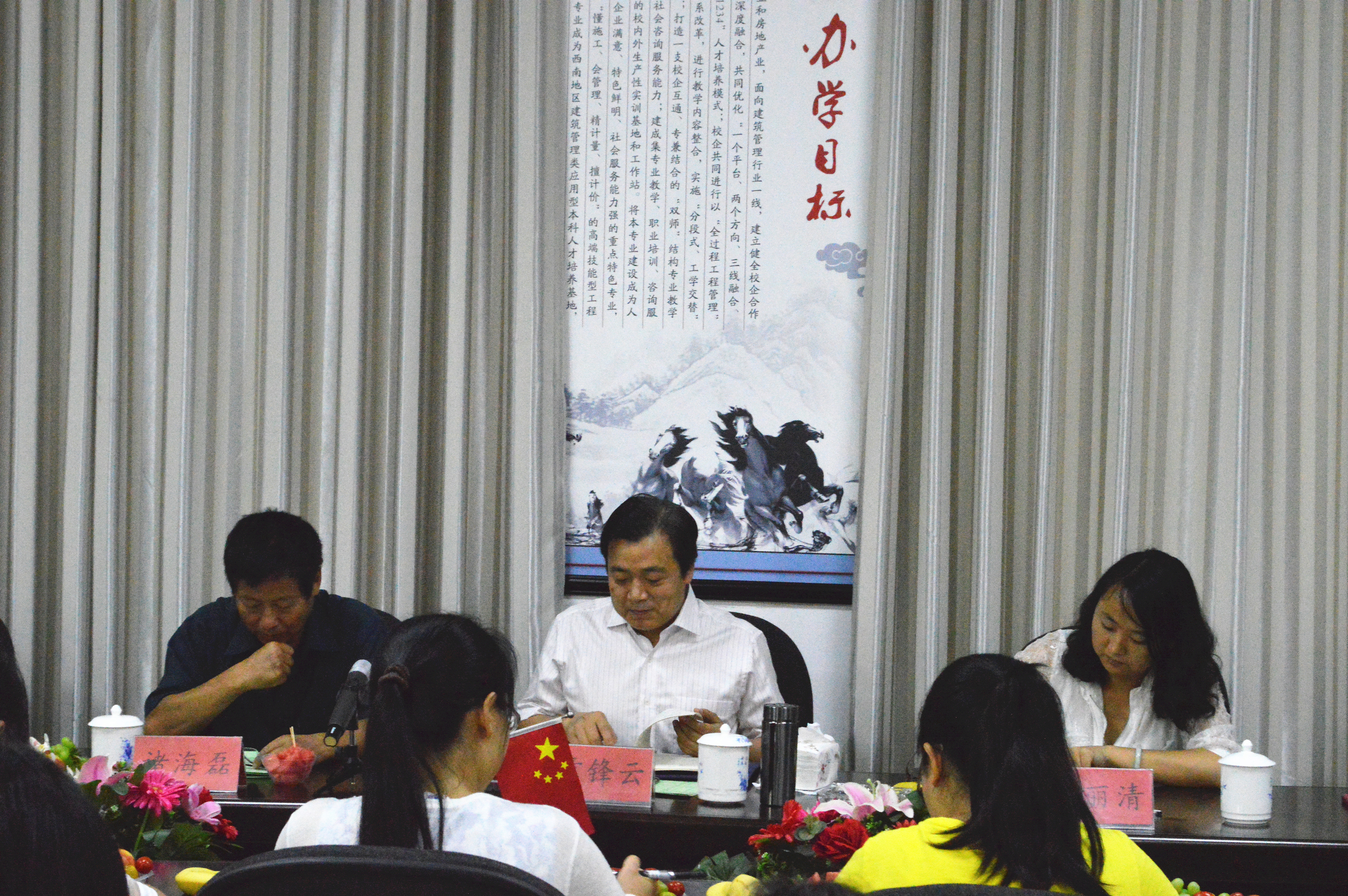 2015年5月21日上午,校党委副书记副校长章锋云到建筑管理学院进行调研。建管学院党总支书记诸海磊、副书记杨丽清及全体辅导员们出席参与本次调研。