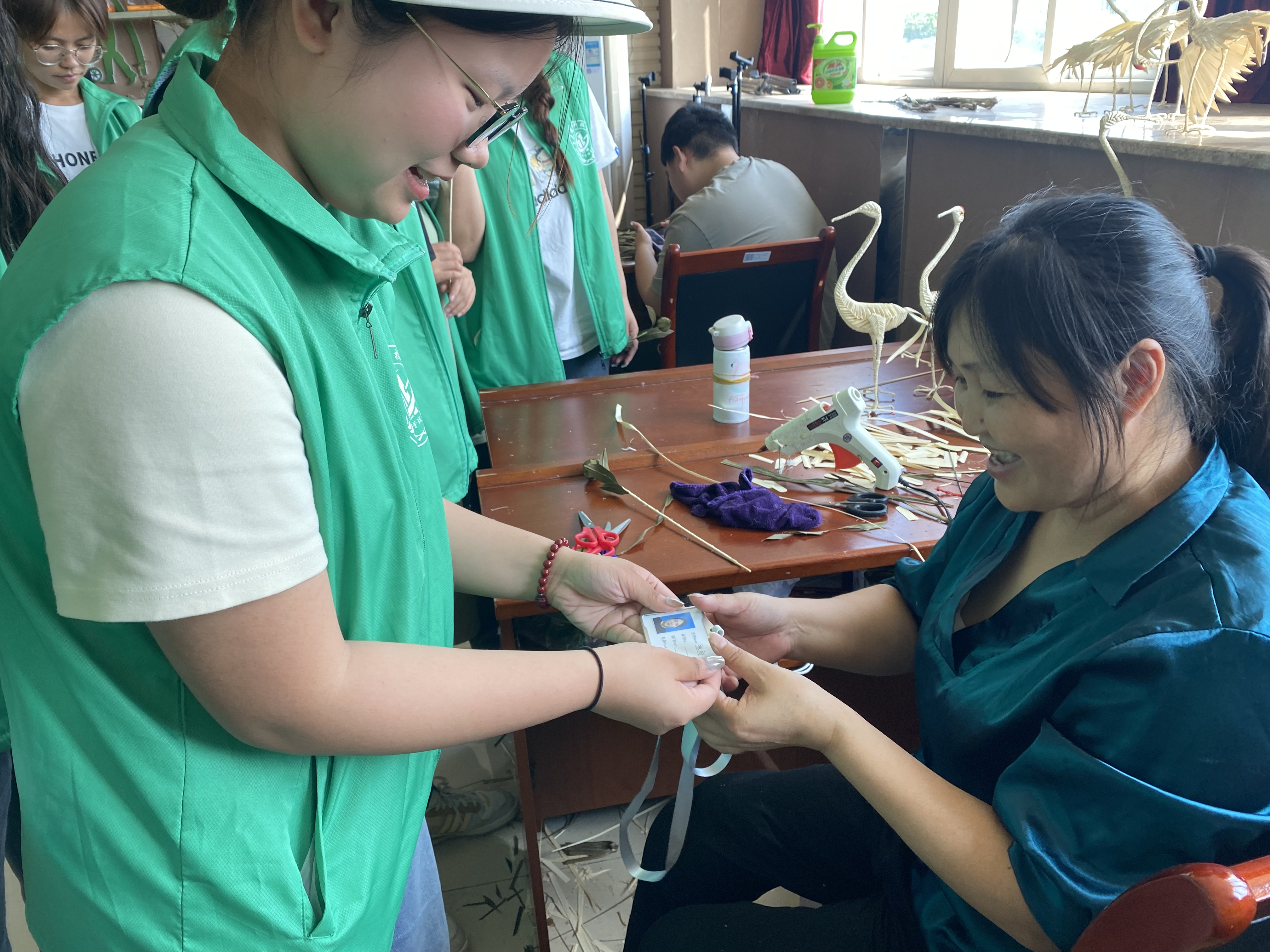 接着,志愿者们向残疾人学习棕编技术。他们耐心地向志愿者们教授棕编的基本技巧,包括如何选择合适的棕榈叶、如何将其剥离成细丝、如何进行基本的编织等。在他们的指导下,志愿者们逐渐掌握了这门手工艺的技巧,在活动结束时,每个人都完成了一件自己的棕编作品。