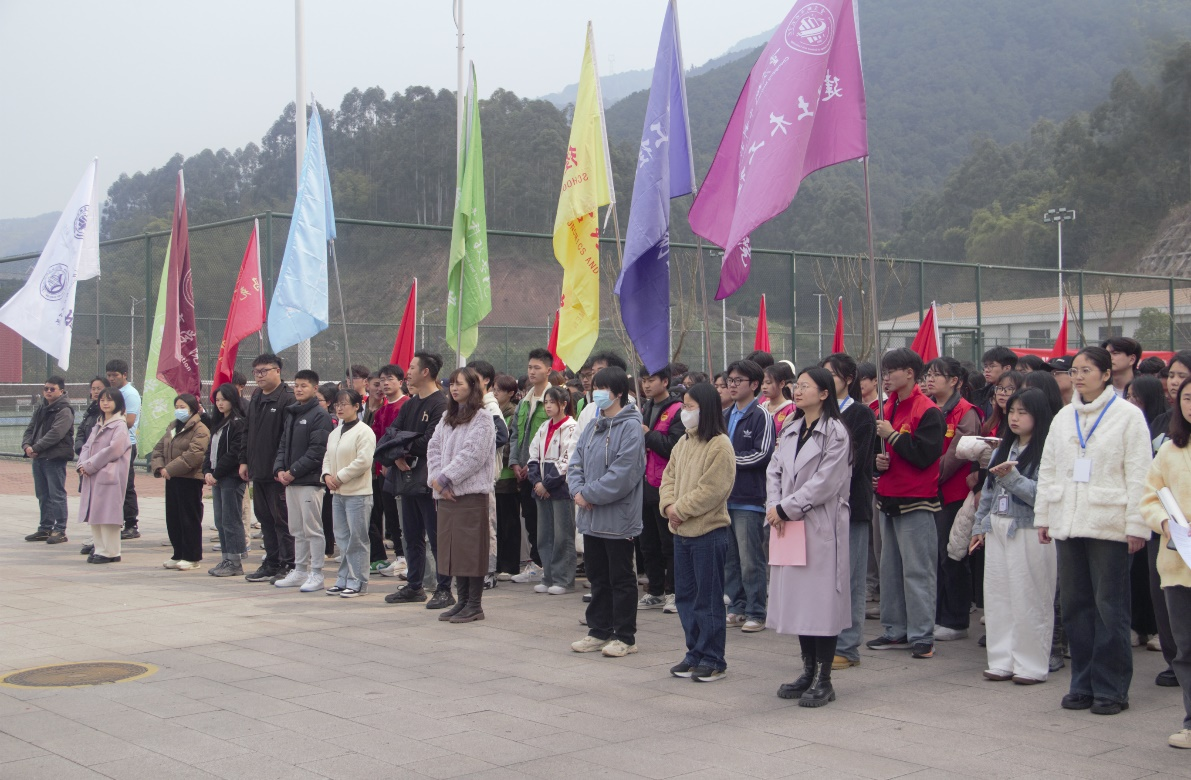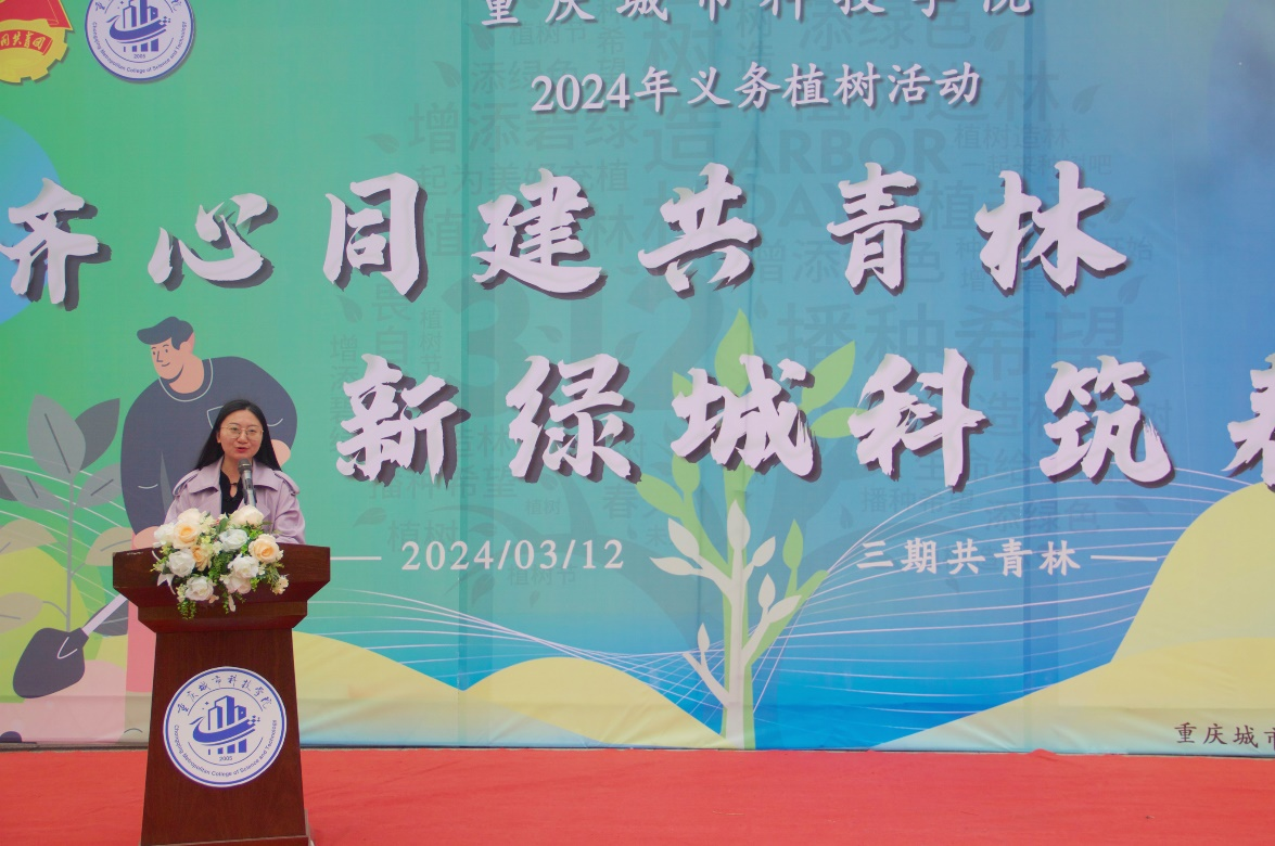 开展活动前,刘老师为大家介绍本次活动内容。本校多个学院在永川校区开展植树节活动。
